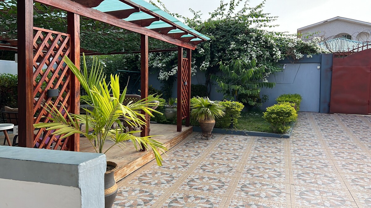 House is located in a peaceful residential apartments with a 5 minutes walk to the Gbawe palace and about 2-3mins drive to Top Base Hills . It offers serenity, safety and comfort . There is beautiful garden in the frontage.