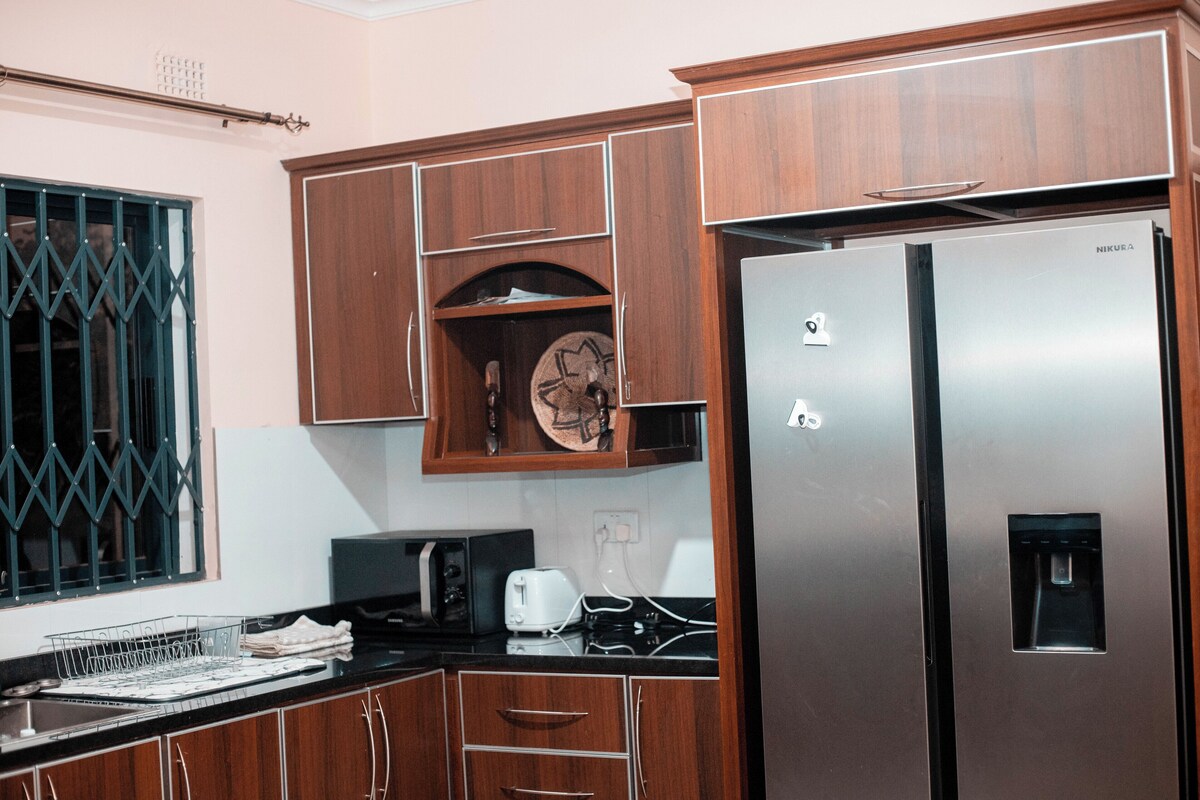 This 3-bedroom apartment is perfect for your escape to Lusaka. Step into this marvelous property and be greeted by a cool and pleasant atmosphere. The bedrooms offer a comfortable retreat with 1 queen bed and 2 full beds, ensuring a restful night's sleep for all guests. The bathroom amenities include a relaxing bathtub, adding an extra touch of luxury to your stay. With WiFi, an iron, and AC provided, you'll have everything you need for a convenient and enjoyable experience. We'll be available to answer any questions while you stay at our place.