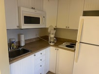 KITCHENETTE: Refrigerator, microwave, drip coffee maker, blender, stove