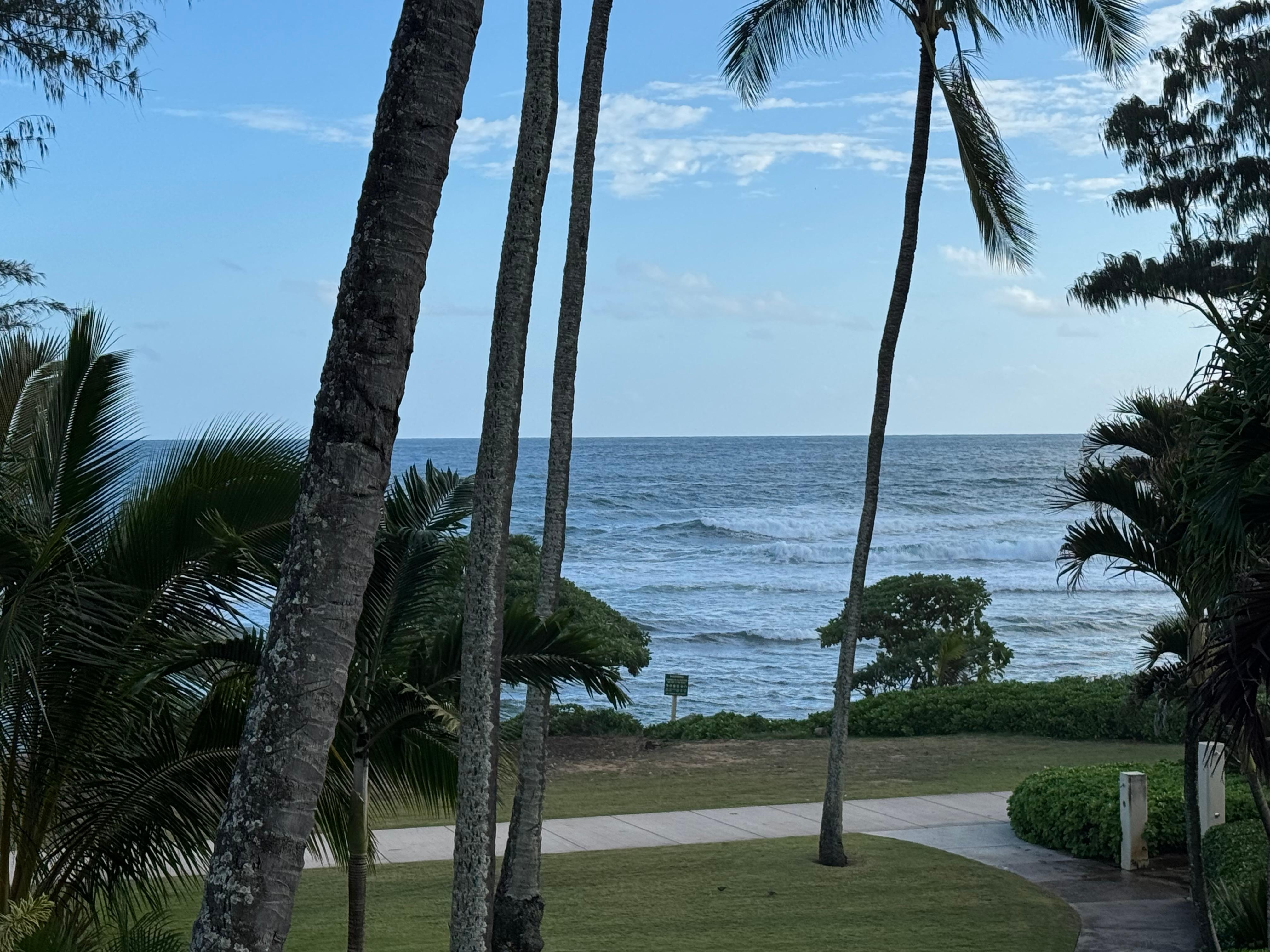 Unsere Studio-Apartment mit Meerblick befindet sich in der obersten Etage (3. Etage) des Islander on the Beach in Kapa'a, Kauai, und bietet einen atemberaubenden Blick auf den Pazifischen Ozean.