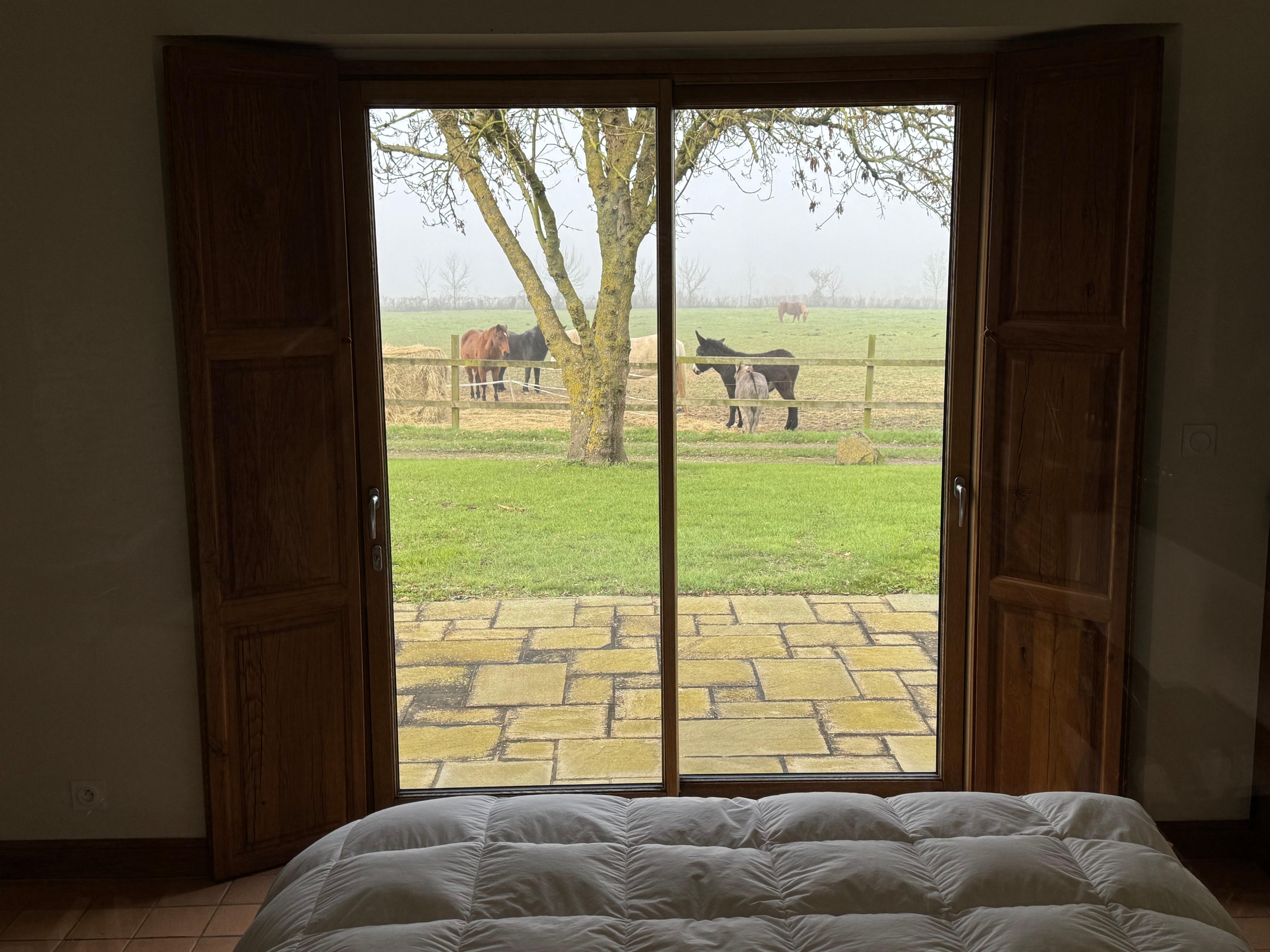 We have been very friendly welcomed by the owners and introduced to the conditions on site. Both the combined living and dining room with open kitchen and the two bedrooms are generously sized. Both bedrooms, spatially separated by the living area, each have a bathroom with shower, so the accommodation is also suitable for two couples. However, shelves next to the comfortable beds are only partially available, ditto the light for reading in bed. There is also a separate toilet next to the entrance, where the washing machine is also located. The kitchen is well equipped and some helpful basics can be found, e.g. oil/ vinegar, spices, coffee, tea, sugar, etc. There is enough crockery and cutlery, so you can get by for about 2 days. At the fireplace with cozy couch and armchairs one likes to stay, firewood is available. Around the house are 3 terraces, on the largest there is both a table with chairs and a seating area, as well as a barbecue and a large parasol. In front of the indoor pool there are two deck chairs. Beautiful open garden with views of the vineyards, groves of trees, old wayside cross, paddock and the village of Liré. In Liré you will also find a bakery and a small supermarket for daily needs, in Ancines you will find a little more of everything, including gas stations. Many destinations can be reached within 30, 60 or 90 minutes by car, to Nantes it takes about 30 minutes, to the sea at Noirmoutier or Crousic about 90 minutes. We enjoyed the stay very much and had a very nice autumn vacation with the family. Thank you very much!