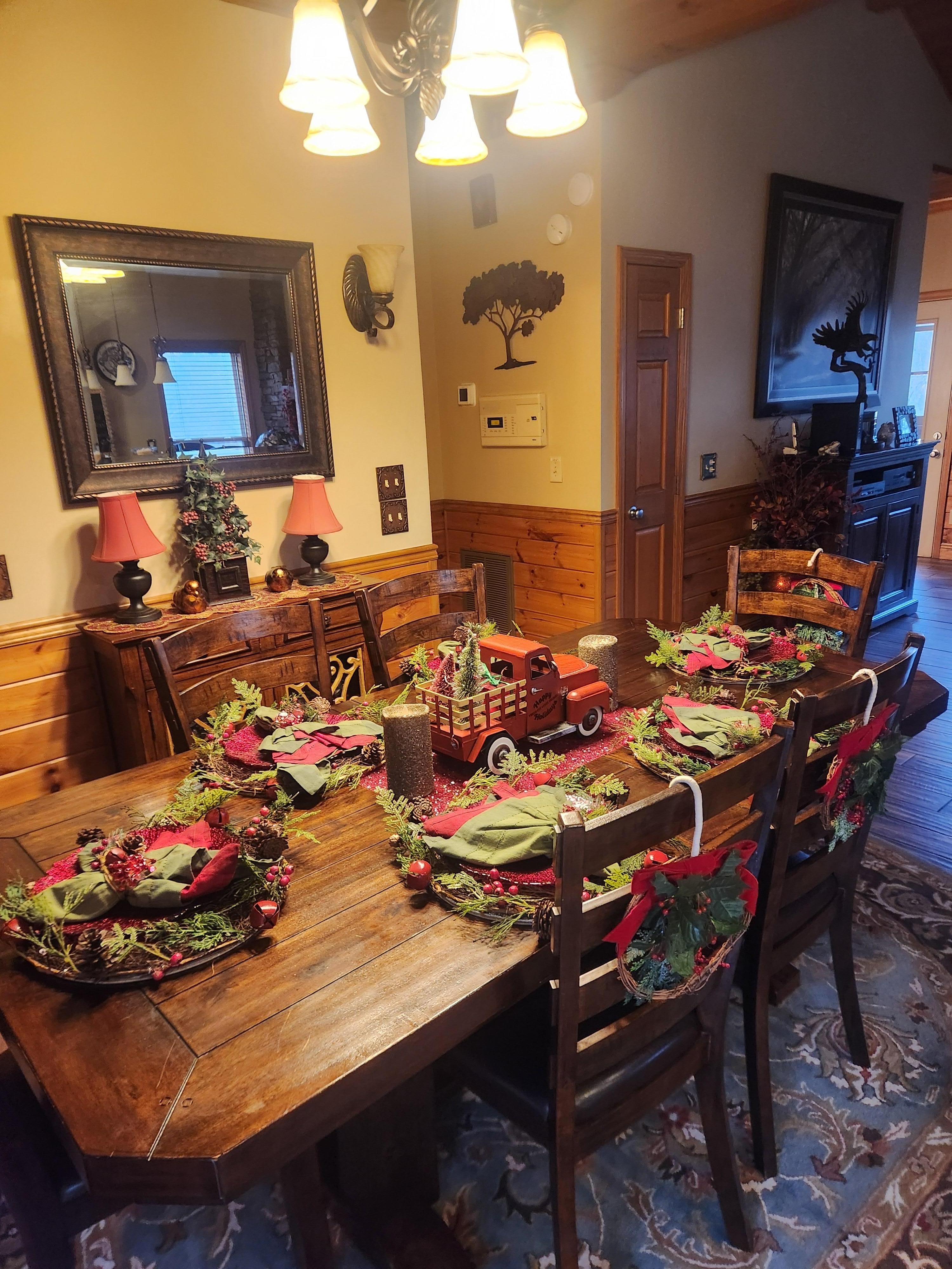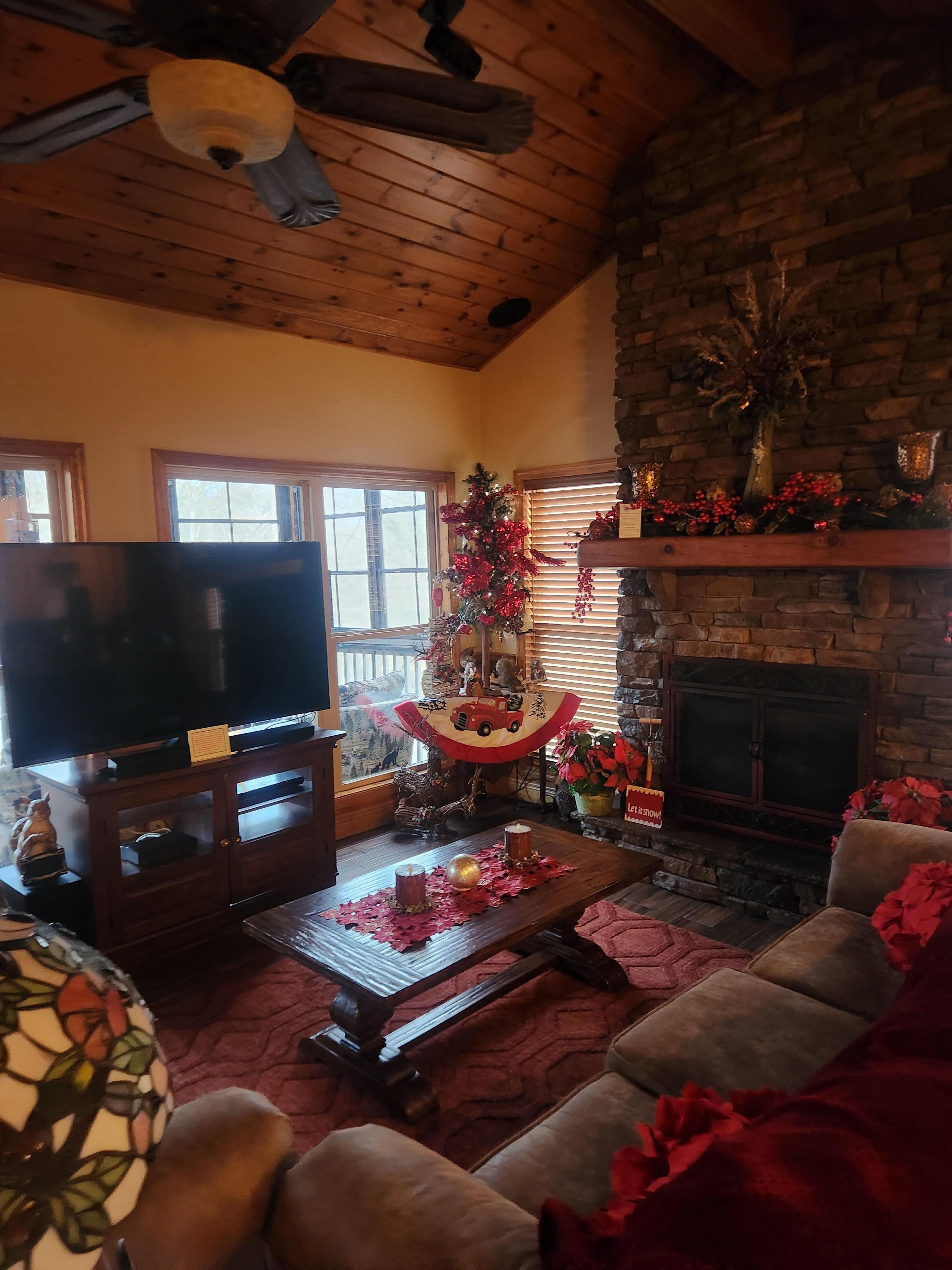 Luxuxtaubenschmiede-Fluss-Kabine-Kristallwasser mit drei Schlafzimmern. Genießen Sie dieses einzigartige Ferienhaus nur 1,5 km von der Innenstadt von Pigeon Forge entfernt in der Nähe aller Sehenswürdigkeiten. Genießen Sie einen privaten Aussichtsbereich und gelangen Sie direkt am Little Pigeon River. Diese Kabine ist ein 3 Schlafzimmer 2 und 1/2 Badezimmer. Die Master Suite auf der obersten Ebene verfügt über ein Kingsize-Bambusbett mit verstellbarem / massierendem Bett und einem 36-Zoll-Flachbildschirm. Das Master-Badezimmer bietet eine begehbare Dusche, einen Wasserfall-Whirlpool, einen 36-Zoll-Flachbildschirm, einen begehbaren Kleiderschrank und 2 Waschbeckenbereiche. Das Wohnzimmer auf der obersten Ebene bietet eine Couch mit Liebessitz, einen Gaskamin, einen 70-Zoll-Flachbildfernseher mit Surround-Sound-Bar, nur 1/2 Bad und zeitgesteuerte Lichtshows an den Abenden. Es gibt sogar ein gesamtes Haus-Surround-Sound-Stereo-System, das Blue-Tooth-fähig, CD-kompatibel und Radiofähig ist. Die Küche bietet einen Weinkühler, einen Geschirrspüler, einen Herd mit Heißluftofen, eine Mikrowelle, eine Ninja Coffee Bar Station, einen Mixer für Getränke und einen Kühlschrank. Der Küchenbereich bietet einen großen Barbereich mit 2 Barhockern und einen Essbereich mit Tisch und 6 Stühlen. Neben der Hauptebene von Crystal Waters befindet sich eine Außenküche, die eine Moderno-Terrasse mit 6 Sitzplätzen, einen Gaskamin, einen Gasgrill und einen Tisch mit Wrap-around-Sitzen bietet. Der Außenbereich ist beleuchtet im Konzertboden und leuchtet in den dunklen Arbeitsplatten aus Beton. Vergessen Sie nicht, in die Bäume zu schauen. Die Hauptebene im Veranda-Bereich bietet 4 Stühle, 2 drehbare Loungesessel, einen elektrischen Kamin, einen 32-Zoll-Flachbildfernseher und einen unbezahlbaren Blick auf den Little Pigeon River. Die untere Etage bietet ein Spielzimmer mit Billardtisch, Spielautomat, 60 Spielautomaten, Queen-Size-Schlafsofa, Gaskamin und 70-Zoll-Flachbildfernseher. Es gibt zwei Schlafzimmer auf der unteren Ebene. Eines bietet eine verstellbare / massierende Matratze mit Queensize-Bambus und einen 36-Zoll-Flachbildfernseher. Das zweite Schlafzimmer bietet eine verstellbare / massierende Matratze mit King-Size-Bambus sowie einen 36-Zoll-Flachbildfernseher. Das Badezimmer in der unteren Etage verfügt über eine Whirlpool-Badewanne und eine Duschkombination. Die gro��e, in der unteren Ebene abgeschirmte Veranda bietet 4 Stühle, 1 Drehsessel, Beleuchtung und Tische. Von der unteren Ebene, die im Veranda-Bereich abgeschirmt ist, führt ein Fußweg zu der unteren Veranda, die sich oberhalb des Little Pigeon River befindet und einen Tisch mit 6 Stühlen und 2 Liegen bietet. Es gibt einen weiteren Grillbereich im Freien mit einem Holzkohlegrill, der nur wenige Schritte vom rauschenden Wasser des Little Pigeon River entfernt ist. Was für ein großartiger Ort, um Forellen zu fangen oder einfach von allem wegzukommen. Kommen Sie und sehen Sie, warum jedes Jahr so viele Gäste zurückkommen. 500 US-Dollar. 00 Kaution wird zum Zeitpunkt des Check-in berechnet. Die Kaution wird bis nach dem Check-out einbehalten. Diese Kabine wird vor jedem Aufenthalt auf Qualitätskontrolle überprüft. Fireside Chalets möchte für jeden Aufenthalt ein erstklassiges Urlaubserlebnis bieten. Schaffen Sie Erinnerungen, die ein Leben lang halten werden, und reservieren Sie heute Crystal Waters für Ihren Kurzurlaub. Die Kabine bietet Platz für 8 registrierte Gäste und wird strikt durchgesetzt. Hat nur Parkplätze für 2 Autos, kein Parken auf der Straße ist erlaubt. Keine Haustiere, bitte nicht rauchen.