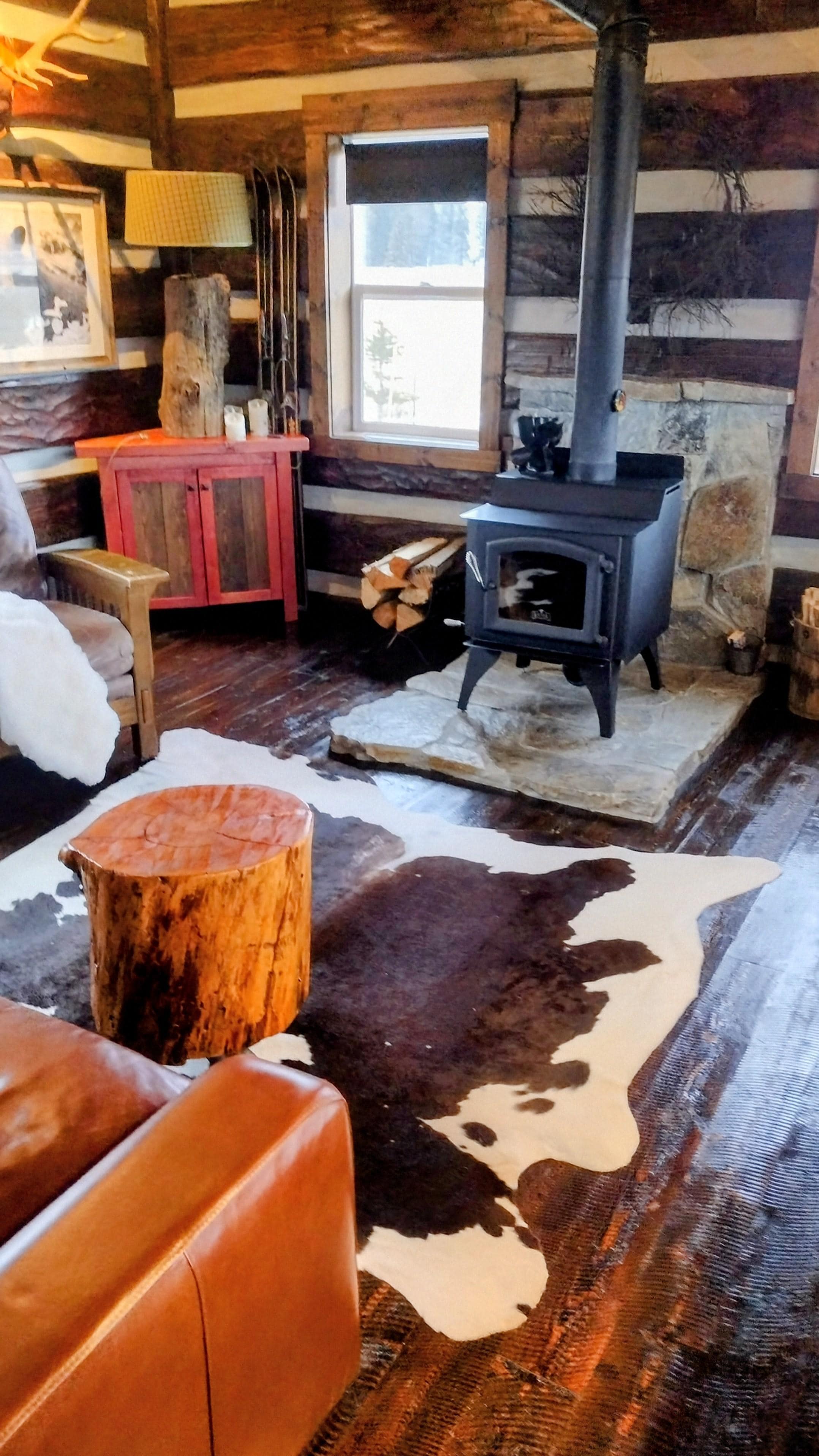 Unsere brandneue Hütte befindet sich im wunderschönen Flathead Valley, nur 9 Meilen von Whitefish und ungefähr 30 Meilen vom Westeingang des Glacier Nationalparks entfernt. Eine rustikale Hütte im Lodge-Stil, inspiriert vom rauen Geist der National Park Lodges, die mit viel Liebe zum Detail gebaut wurden, wie z. B. kreisförmige Holzböden, Betonplatten und gewölbte Holzdecken. Unsere Kabine ist 500 Quadratmeter groß, hat ein Schlafzimmer mit einem Queen-Size-Bett und einer flauschigen Daunendecke, ein Badezimmer mit einer begehbaren gefliesten Dusche und eine Küchenzeile im Wohnzimmer. Das Wohnzimmer verfügt über eine Mischung aus handgefertigten Möbeln und Ledermöbeln, einen gemütlichen Holzkamin sowie einen Fernseher und einen DVD-Player. Wir haben kein Internet. Verizon bietet eine gute Zellabdeckung, aber Sprint-Benutzer haben Probleme, ein Signal zu empfangen. Die Küchenzeile verfügt über Betonarbeitsplatten, einen kleinen Unterbaukühlschrank, eine Mikrowelle, ein großes, tiefes Spülbecken und ein 2-Flammen-Glaskeramik-Kochfeld. Die Kabine ist komplett mit Geschirr, Töpfen und Pfannen, Besteck und Serviergeschirr ausgestattet. Zwei rote Andironack-Stühle auf der Veranda bieten einen weiten Blick auf mehrere Gipfel des Gletschers, der Swan Mountains, des Whitefish Mountain Resorts und der Whitefish Mountains. Zum Grillen im Freien gehört ein Gasgrill. Unsere Hütte befindet sich auf dem gleichen Grundstück wie unser Hauptwohnsitz auf 7 Hektar. Die Hütte ist ca. 50 Meter von unserer Residenz entfernt. Unser Grundstück liegt umgeben von Ranches und Feldern. Die Alfalfa auf unserem Grundstück wird zweimal geschnitten. In der Regel einmal Mitte Juni und einmal Mitte August. Wir sind von großen Ranches umgeben, so dass während der Schnitt- und Erntesaison Rinder, Pferde und gelegentliches Ranch-Equipment zu hören sind. Dies ist die Heimat vieler Hirsche, so dass Sie das Privileg haben, Hirschen beim Laufen und Spielen auf unserem Grundstück zuzusehen.
