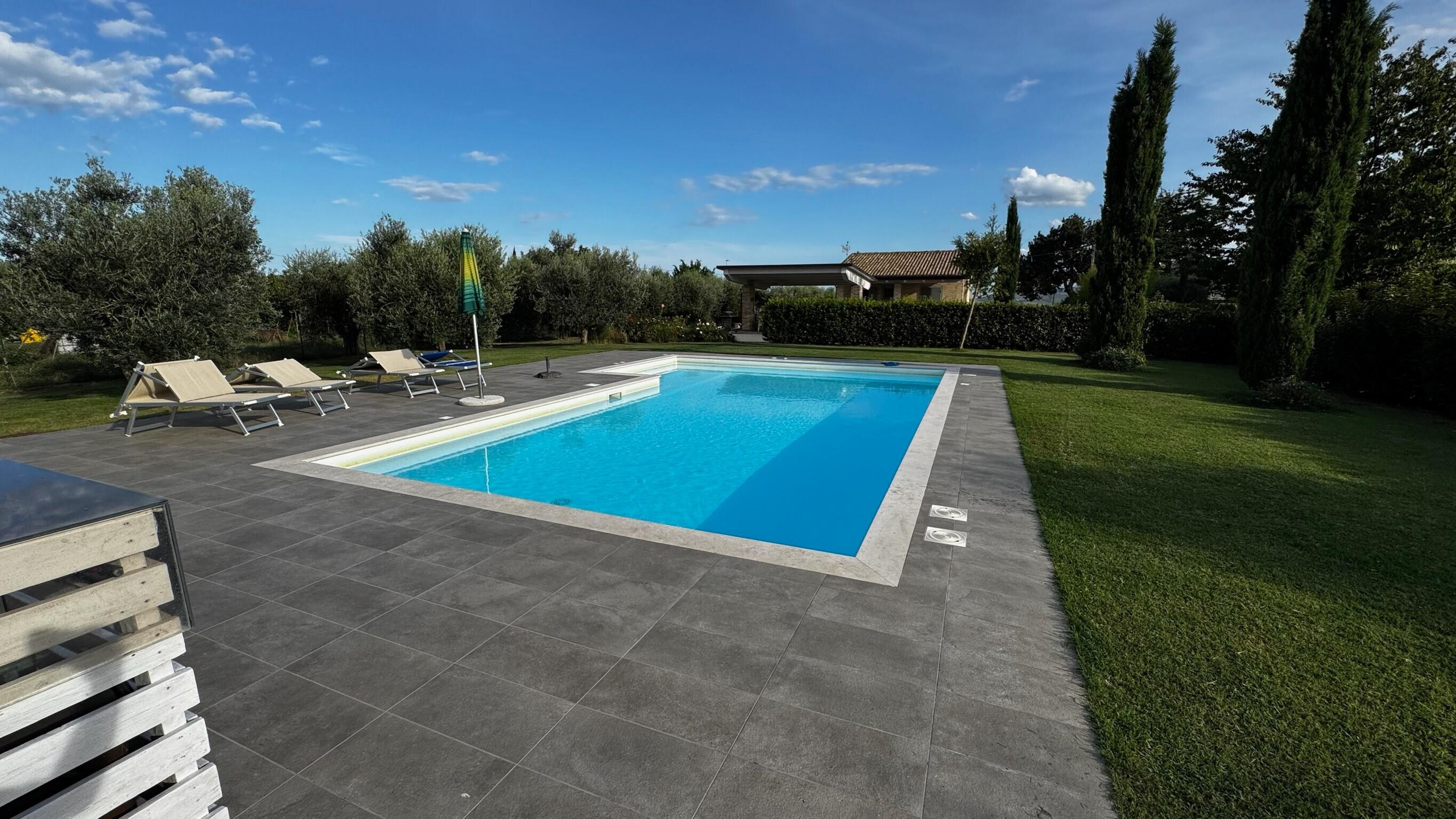 Nur drei Kilometer von den Adria-Stränden von Porto Sant’Elpidio, Civitanova Marche und Porto San Giorgio entfernt liegt La Cascina di Mario, eine schöne und renovierte Villa für Familien oder kleine Reisegruppen, die vor kurzem auf hohem Qualitätsstandard wiederhergestellt wurde. Viele traditionelle Eigenschaften wurden behalten und moderne Bequemlichkeiten wurden in diesem rustikalen und traditionellen Ambiente hinzugefügt. Der Zugang zur Villa erfolgt durch elektrische Toranlagen, die zu einem großen Parkplatz führen. Alle Möbel sind bequem und alle Zimmer sind geräumig und hell. Der Pool (10x5 m) mit schönem Blick, der Terrassenbereich und der BBQ-Grill sind perfekt für den sommerlichen Spaß im Freien und um unter der Sonne sich zu entspannen und zu essen. Die nächsten Geschäfte befinden sich in Corva, nur einen Kilometer entfernt, aber auch in Porto Sant’Elpidio sind viele Restaurants und Cafés. Zusätzliche Kosten sind vor Ort zu zahlen: Endreinigung 100,00 euro - - Kurtaxe 0,50 euro pro Tag Vor Ort. Das Aufladen von Elektroautos ist nicht im Preis inbegriffen.