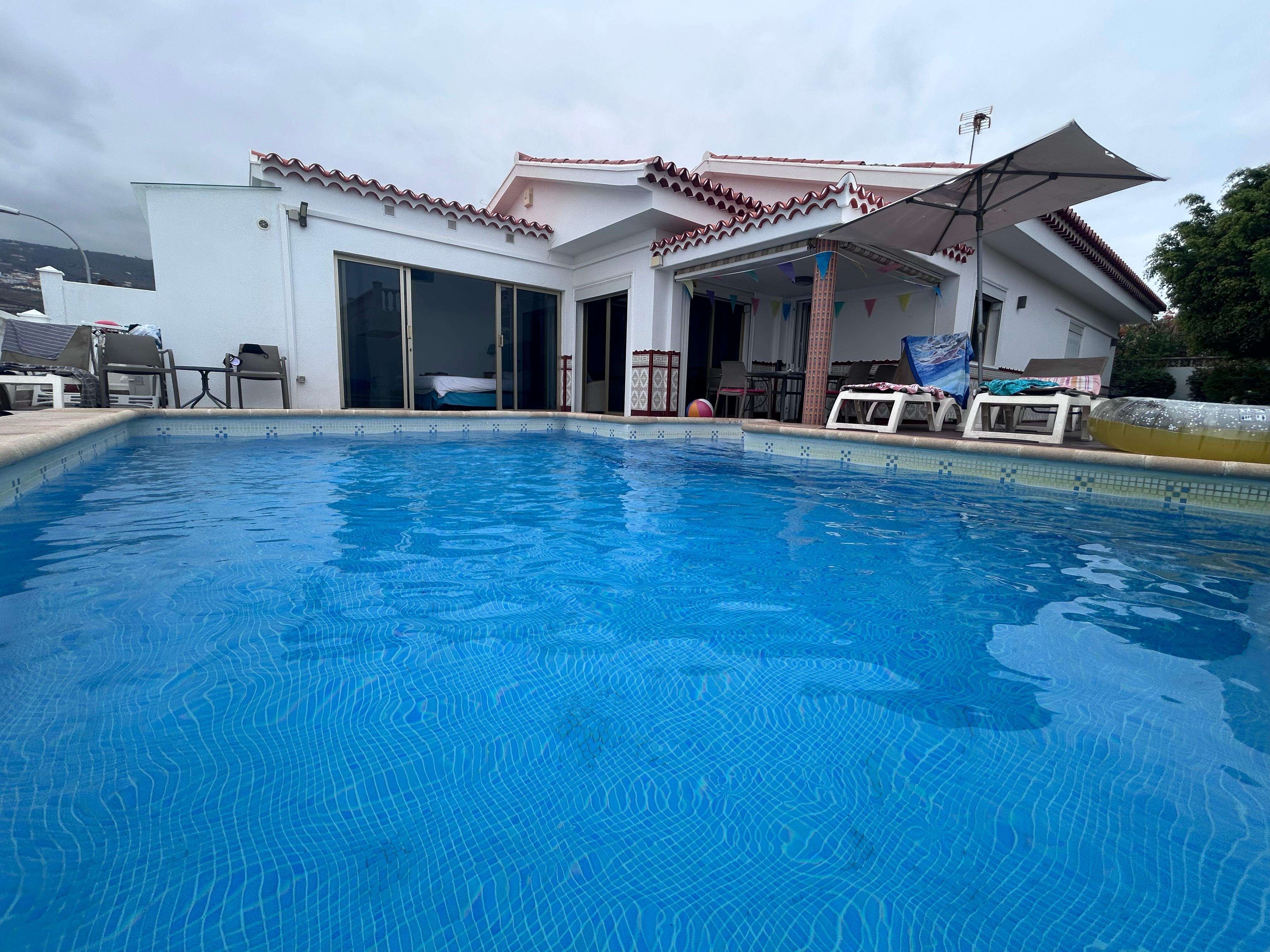 The villa has recently been renovated. Fantastic 4 bedroom villa with 2 en-suite bathrooms. The 2 en-suite bedrooms both have super king size beds and the there is a double room and one twin room. All the bedrooms have 400 thread count bedding and air conditioning in each bedroom. The lounge has a large flat screen TVs with hundreds of channels including sky sports and movies. Wireless internet is available throughout the whole property. The pool is approximately 4m x 5m and is heated with a newly decked area for sunbathing. In the secluded garden you can bbq and relax in style. Uninterrupted sea views across to La Gomera and mountain views to Mount Teide. It is only a short walk to the beach and there are many bars, restaurants and shops also within walking distance. We always leave a welcome pack for our guests which has all the essentials and we tailor it to the time of day that you arrive.