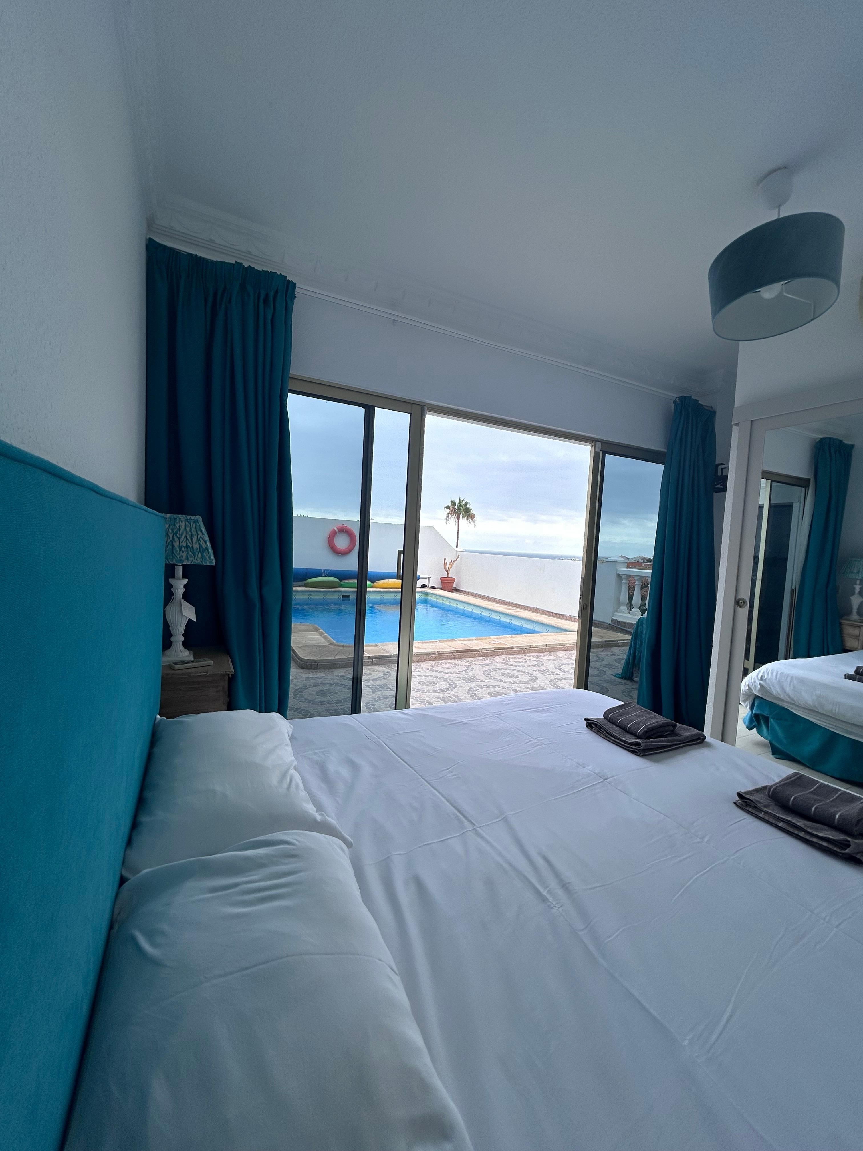We were 3 couples who enjoyed a lovely week in Tenerife wirh ample room for us all. We were welcomed personally and they left a nice basket of breads, cheeses, olives, beers and wines for us to start off with. Grocery and restaurants in walking distance. Nice pool for afternoon swim. Pleasant getaway from our frozen winters at home