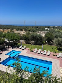 The villa consists of a spacious interior, four double sleeping rooms, a living room, a dining room, a traditional fireplace, two bathrooms, a fully equipped kitchen, a semi-outdoor space and large verandas. All rooms have panoramic views of the unique Cretan landscape.