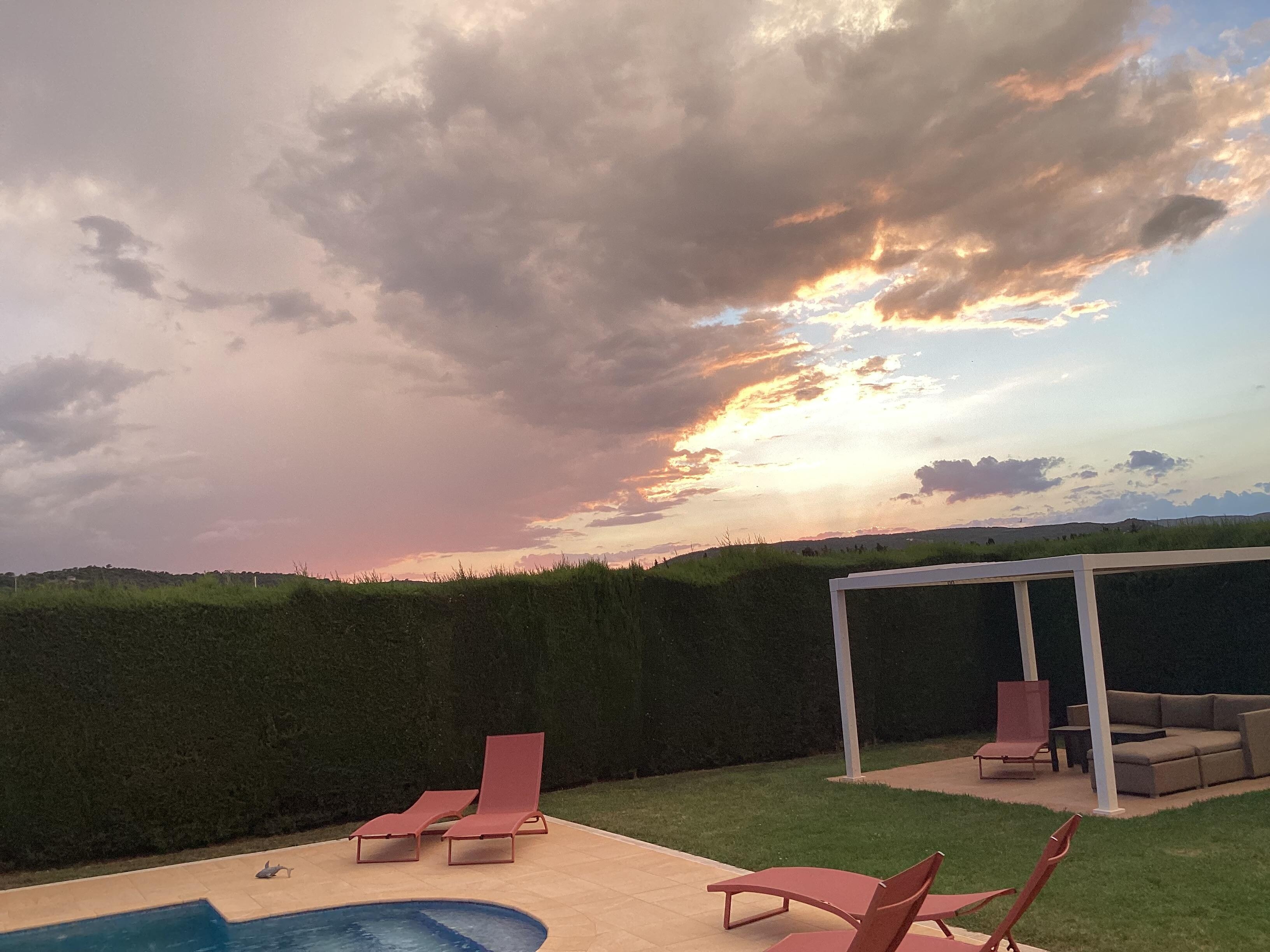 Es gibt Zugang zur Terrasse und Schwimmbad (10x5 m.) Sowohl von der Küche und dem Wohnzimmer. Neben der Küche befindet sich ein Gäste-WC.
