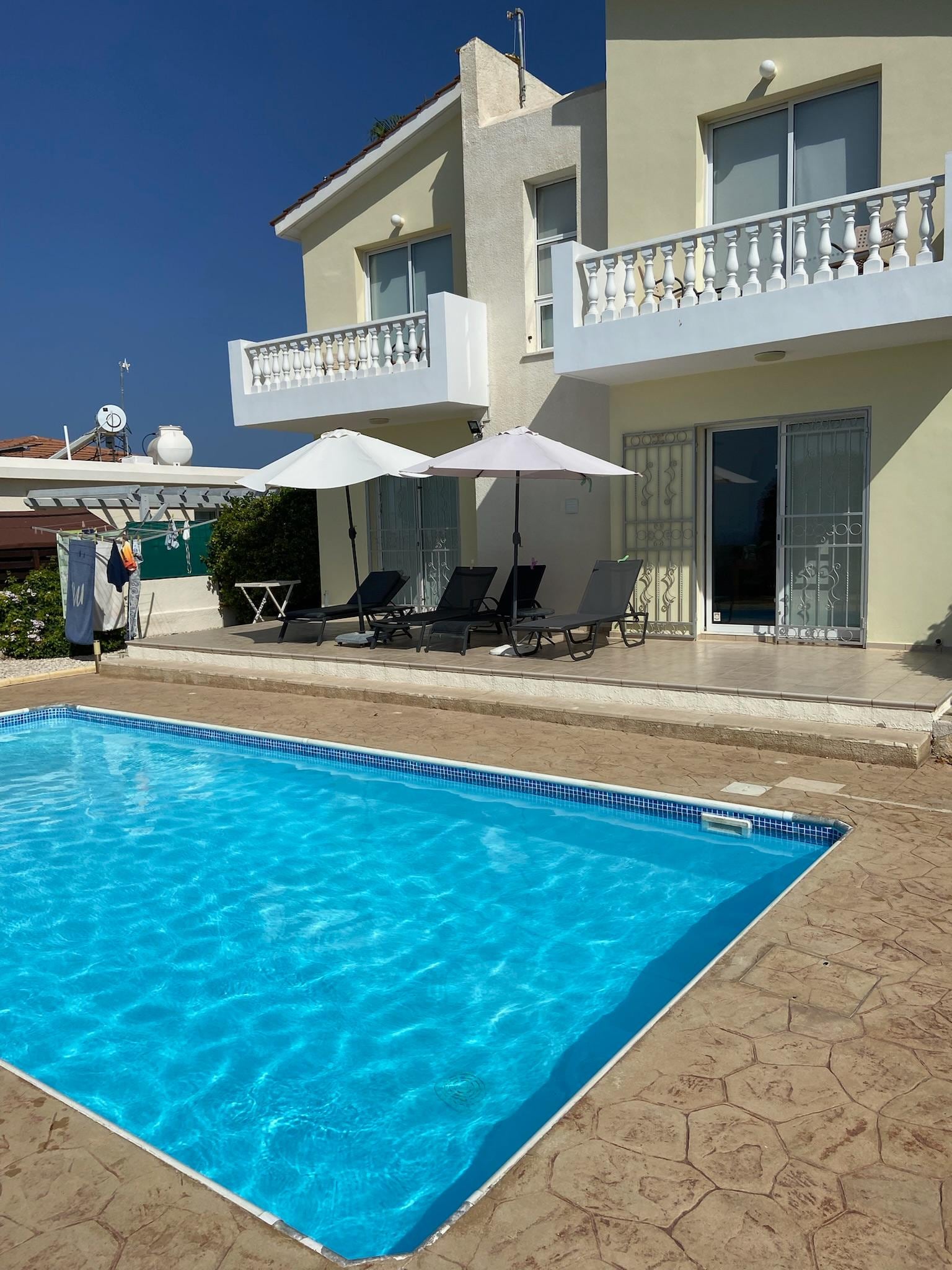 THE VILLA IS LOCATED IN A SEMI-RURAL LOCATION WHICH IS QUIET AND PRIVATE BUT THE CENTRE OF CORAL BAY AND THE TWO BEACHES (CORAL BAY AND CORALLIA BAY) ARE ONLY A 10-15 MINUTE WALK AWAY.
