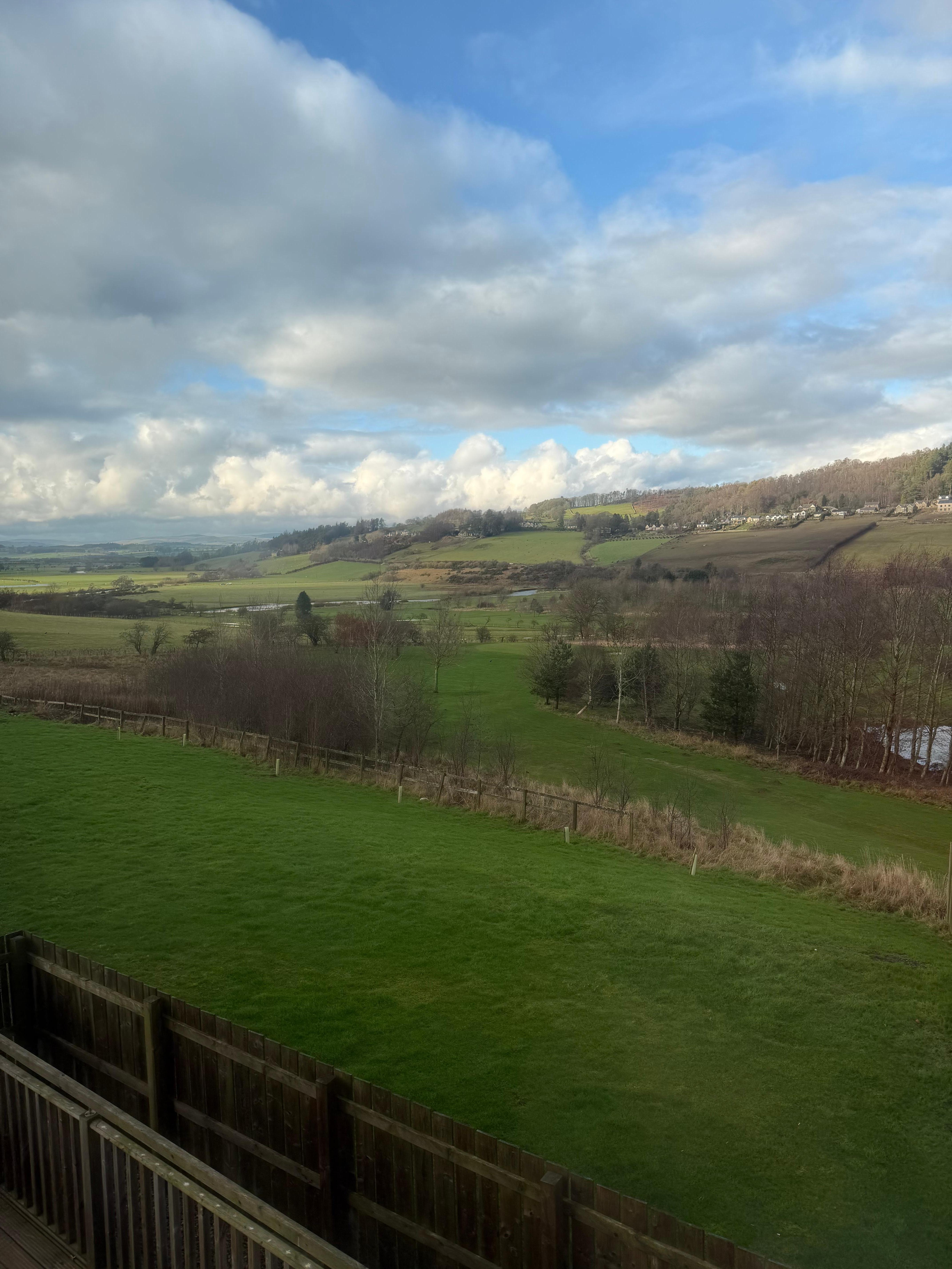 Large wrap around decking on front elevation with panoramic views of the Coquet Valley. Private patio area and enclosed lawned garden. Private parking and shared storage for sporting equipment.