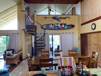 Keauhou Bay is an amazing place to SUP, catch a fishing or snorkel boat, swim and/or snorkel. We have a great collection of beach equipment for our guests. Plus, the house is nicely spread out so that the family can spread out. The upstairs lanai is an amazing spot to eat every meal.
