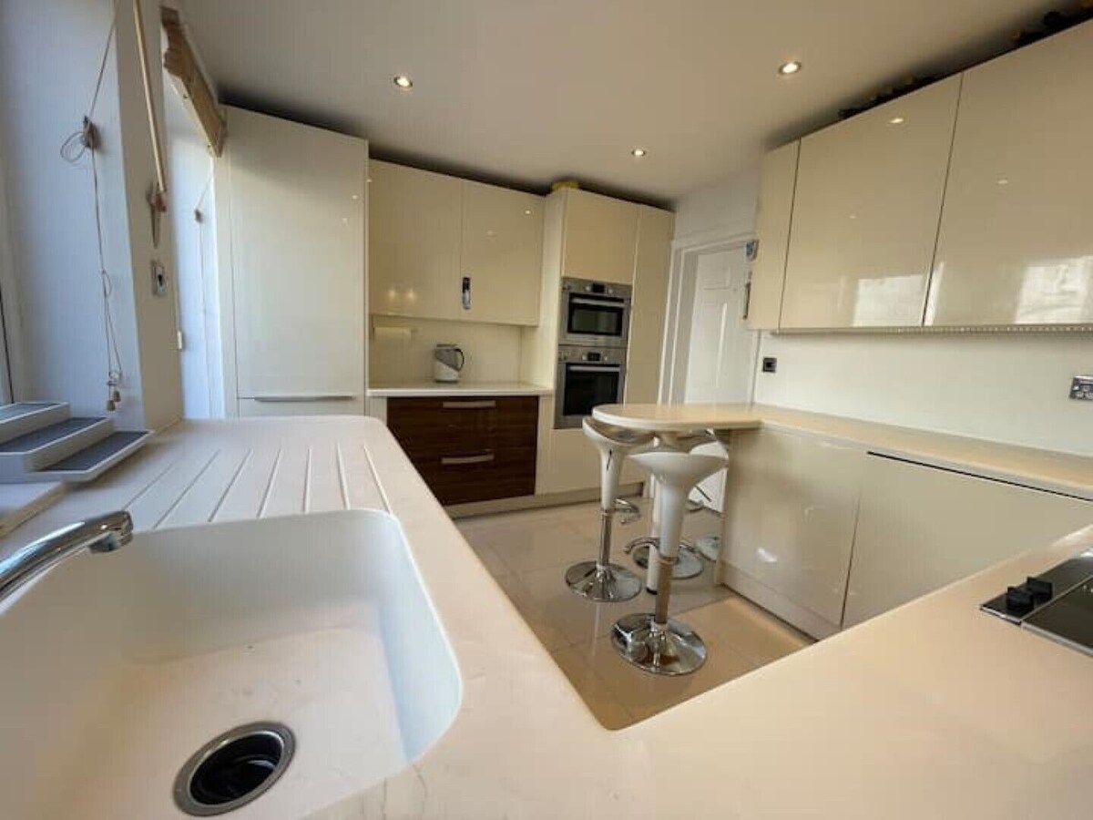 This beautiful intimate cottage located on a very quiet leafy road, is just a 3 minute walk to Ealing Broadway train station so your family will be perfectly positioned to explore all of London. Heathrow airport is only 4 stops (20 minutes) & central London is only 15 minutes on the new Elizabeth Line. Ealing boasts a huge choice of international restaurants and bars, all just a few minutes away on foot. The house has it's own private driveway to safely park your car and a 7kw EV charging point*