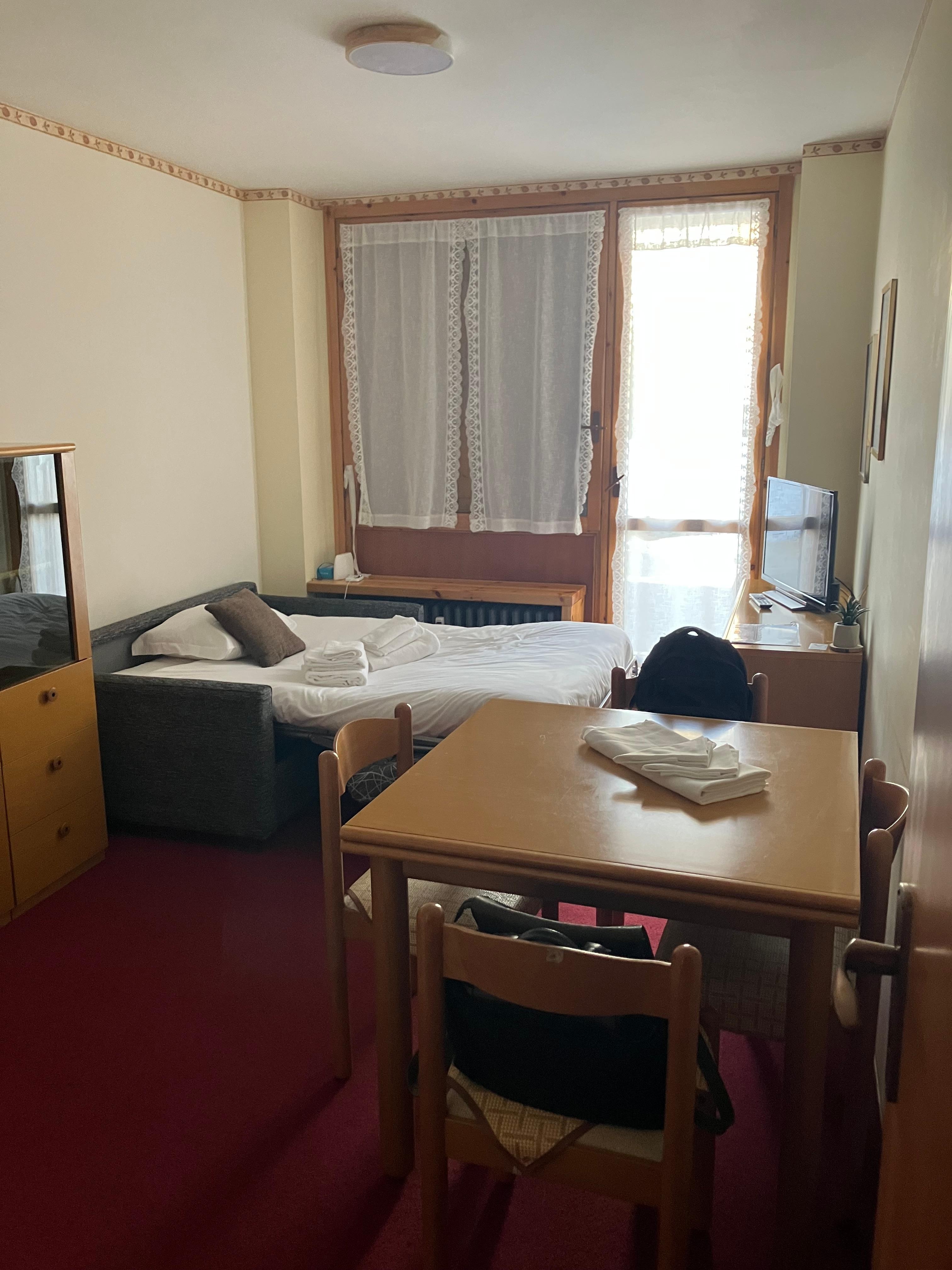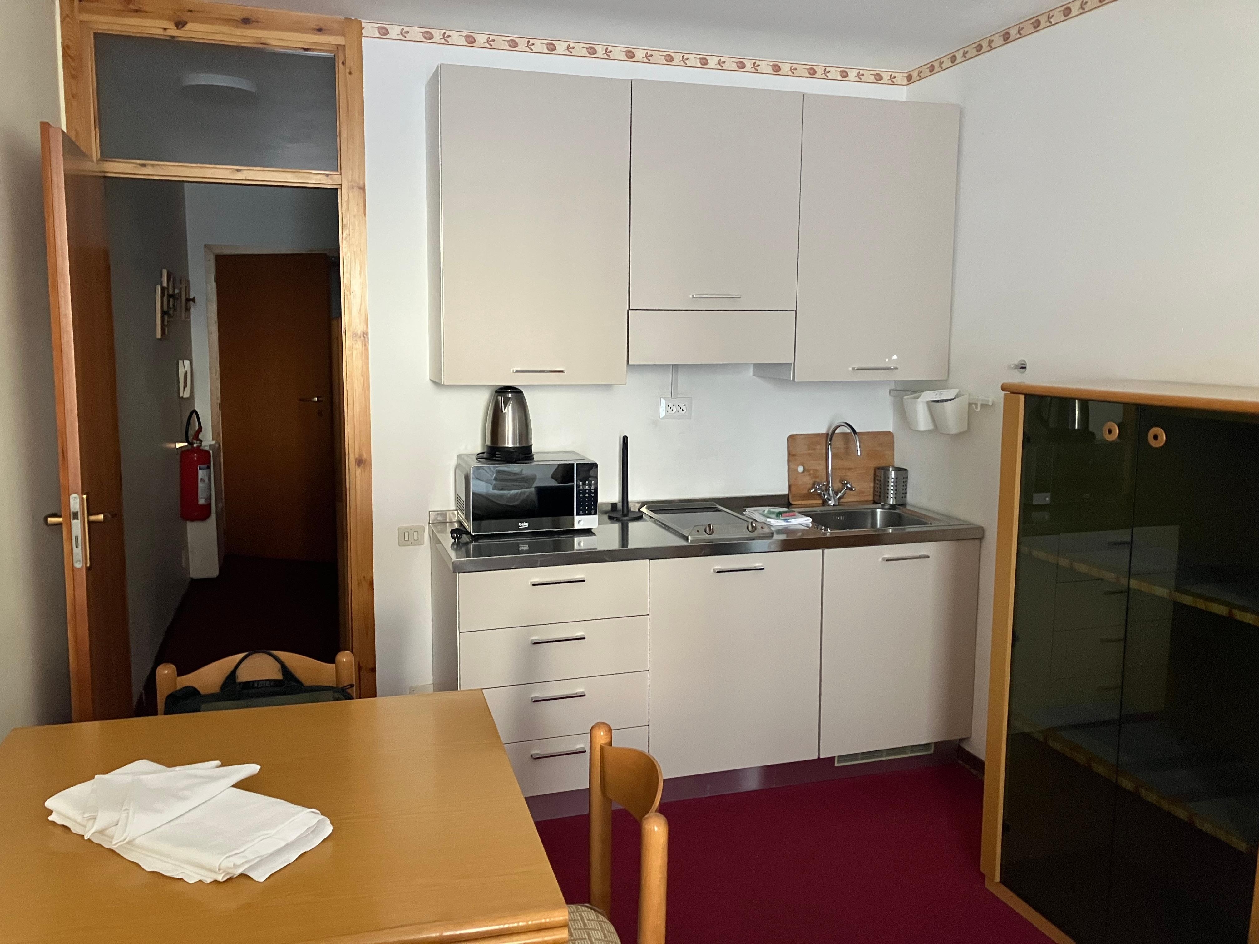 Nur wenige Schritte vom Sessellift Nuova Nube entfernt, bietet dieses sonnige Studio-Apartment für 3 Personen einen idealen Ausgangspunkt für einen erlebnisreichen Urlaub im Herzen der Natur. Die Wohnung im ersten Stock ist komfortabel mit allem ausgestattet, was die Gäste brauchen. Das offene Wohnzimmer verfügt über ein Schlafsofa, einen Smart-TV, einen Esstisch mit Stühlen aus Holz und eine gut ausgestattete Küchenzeile. Küchengeräte wie ein großer Herd, ein Backofen, eine Mikrowelle und ein Kühl-/Gefrierschrank stehen zur Verfügung, um einen sorgenfreien Aufenthalt für Selbstversorger zu gewährleisten.