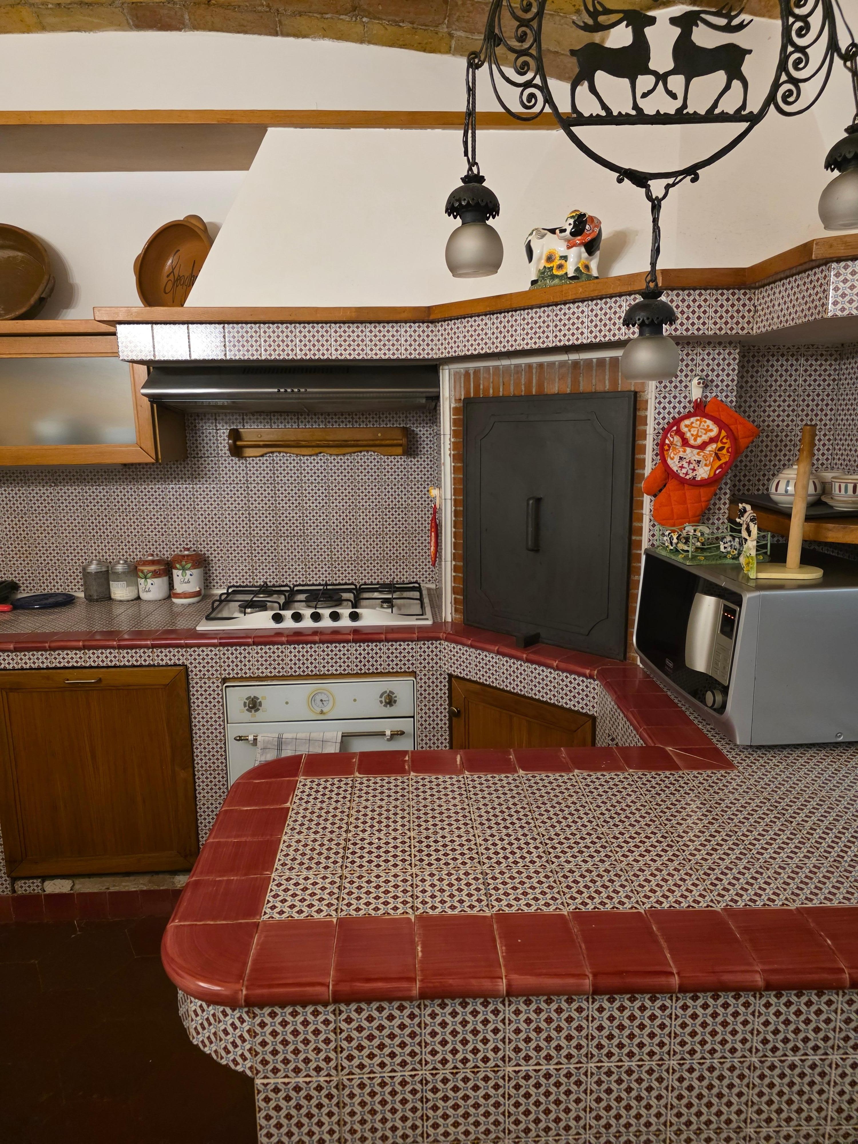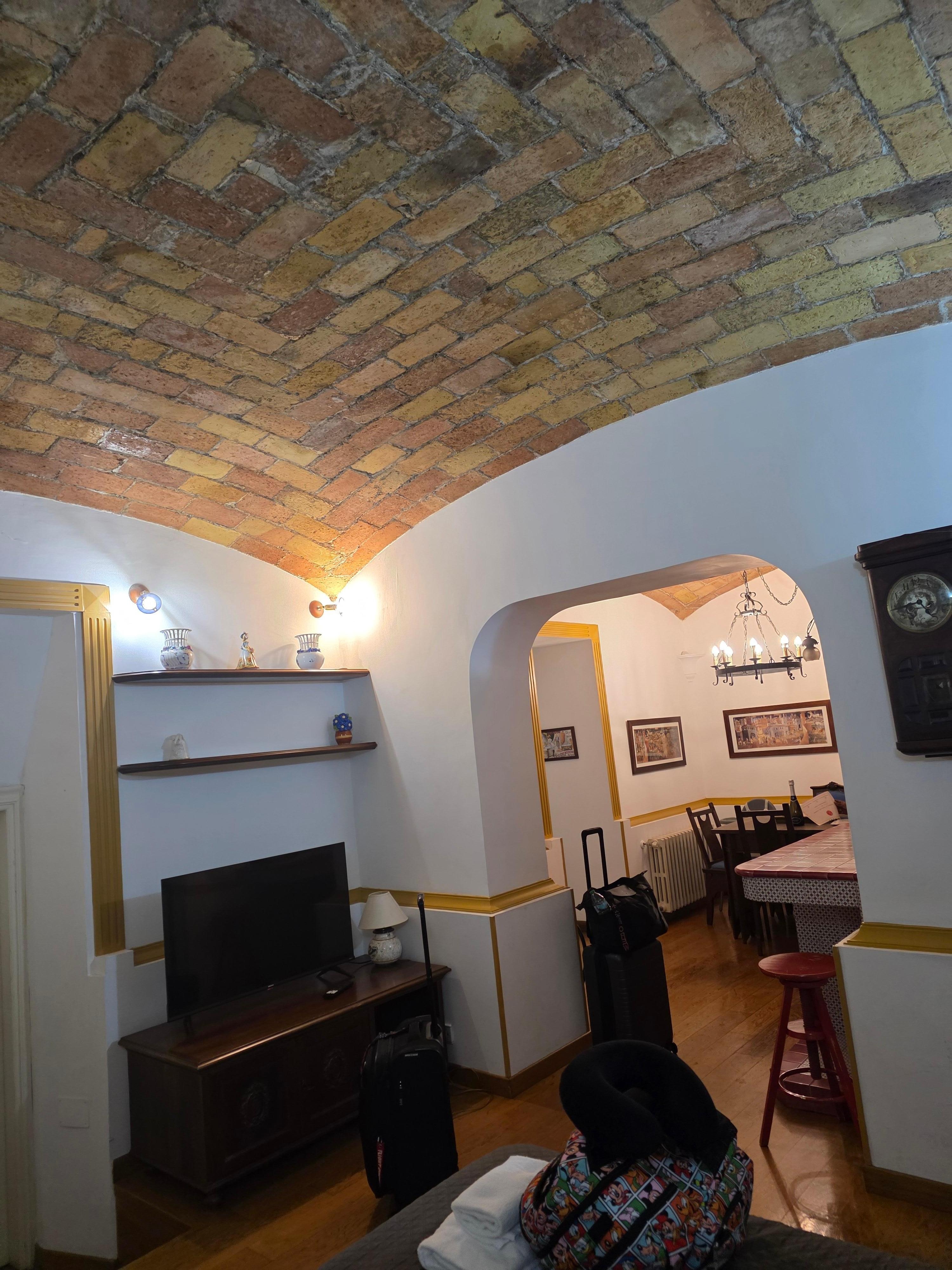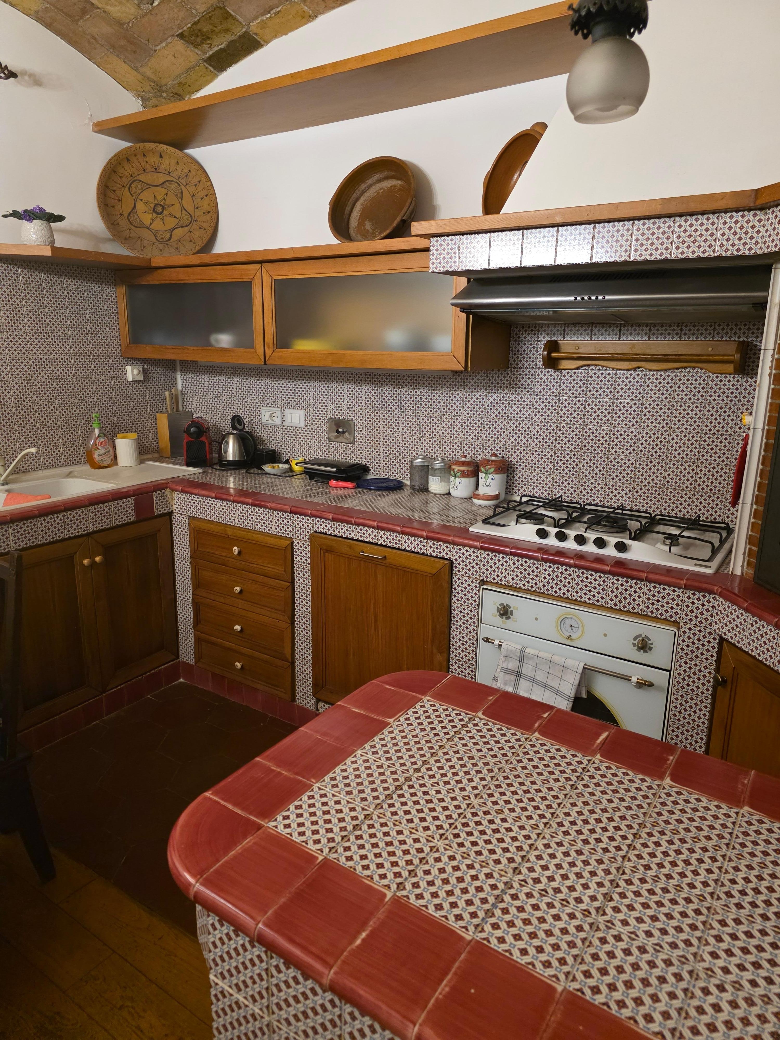 The accommodation is a loft, and is accessed from a private garden and a spiral staircase. A large living room (with sofa bed) opens onto the built-in kitchen, authentic stone vaulted ceilings from the early 1900s.