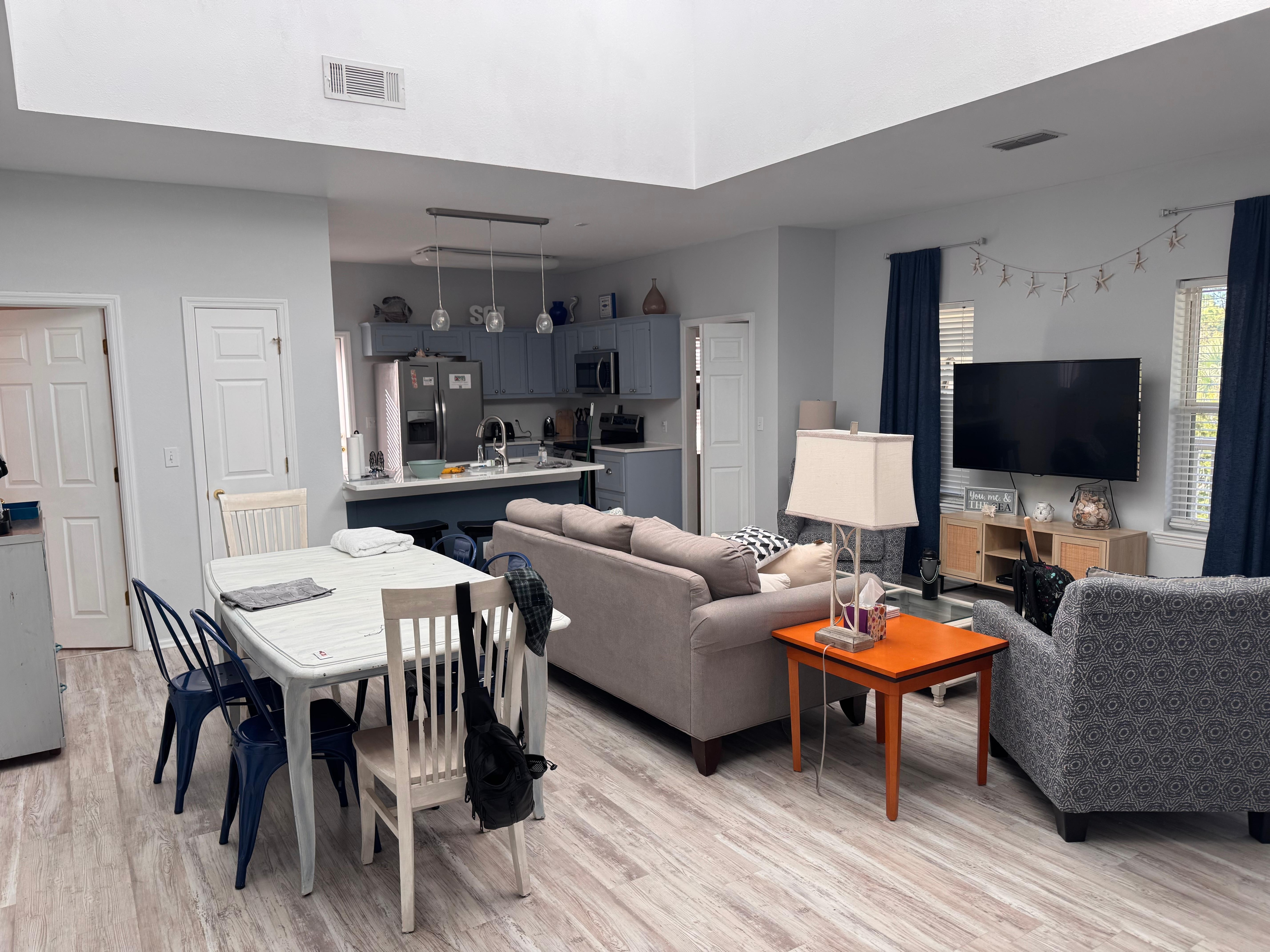 Willkommen bei Island Fun, täglichen Segen! Dieses gemütliche Ferienhaus am westlichen Ende von SGI bietet ein offenes Wohn- und Speisekonzept mit 4 Schlafzimmern und 2 Bädern auf einer Ebene für ein gutes Familientreffen! Der König Master und zwei weitere Schlafzimmer mit einem Queen und Full-Size-Bett öffnen auf das offene Deck. Das vierte Schlafzimmer verfügt über ein Etagenbett und liegt direkt neben dem Küchenbereich. Entspannung ist gegeben mit Blick auf die SGI-Brücke und die Bucht jenseits der offenen Decks und eine große Leinwand Veranda direkt neben dem Wohnzimmer! Zu Fuß zur Bucht ist nur eine schnelle 3 Minuten und Zugang zum Strand ist nur über 2 Blocks bis zur 11. Straße Zugang zum Strand. Es gibt sogar eine Fischreinigungsstation und eine Außendusche, um die Pelzbabys abzuwaschen!
