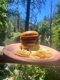 Grillen Sie auf der Landung oder bringen Sie einen Campingkocher mit und kochen Sie auf der Landung (bitte nicht in der Kabine; wir haben hier oben nur begrenzte Ressourcen für Notfallmaßnahmen und ein Feuer könnte verheerend sein). Wir haben Gas- und Weber-BBQs auf der Hauptterrasse zwischen Alpen Glow & Carriage House.