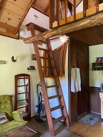 Gelegentlich genehmigen wir einen vierten Gast, der einen Schlafsack mitbringen und auf einer (mitgelieferten) Isomatte schlafen kann. Dies ist jedoch eine kleine Kabine, die am besten von 2-3 Personen genossen wird. Hinweis: Um auf den Schlafboden zu gelangen, müssen Sie eine Leiter erklimmen (siehe Fotos). Wenn das Besteigen einer Leiter ein Problem darstellt, ist dies möglicherweise nicht die beste Kabine für Sie.