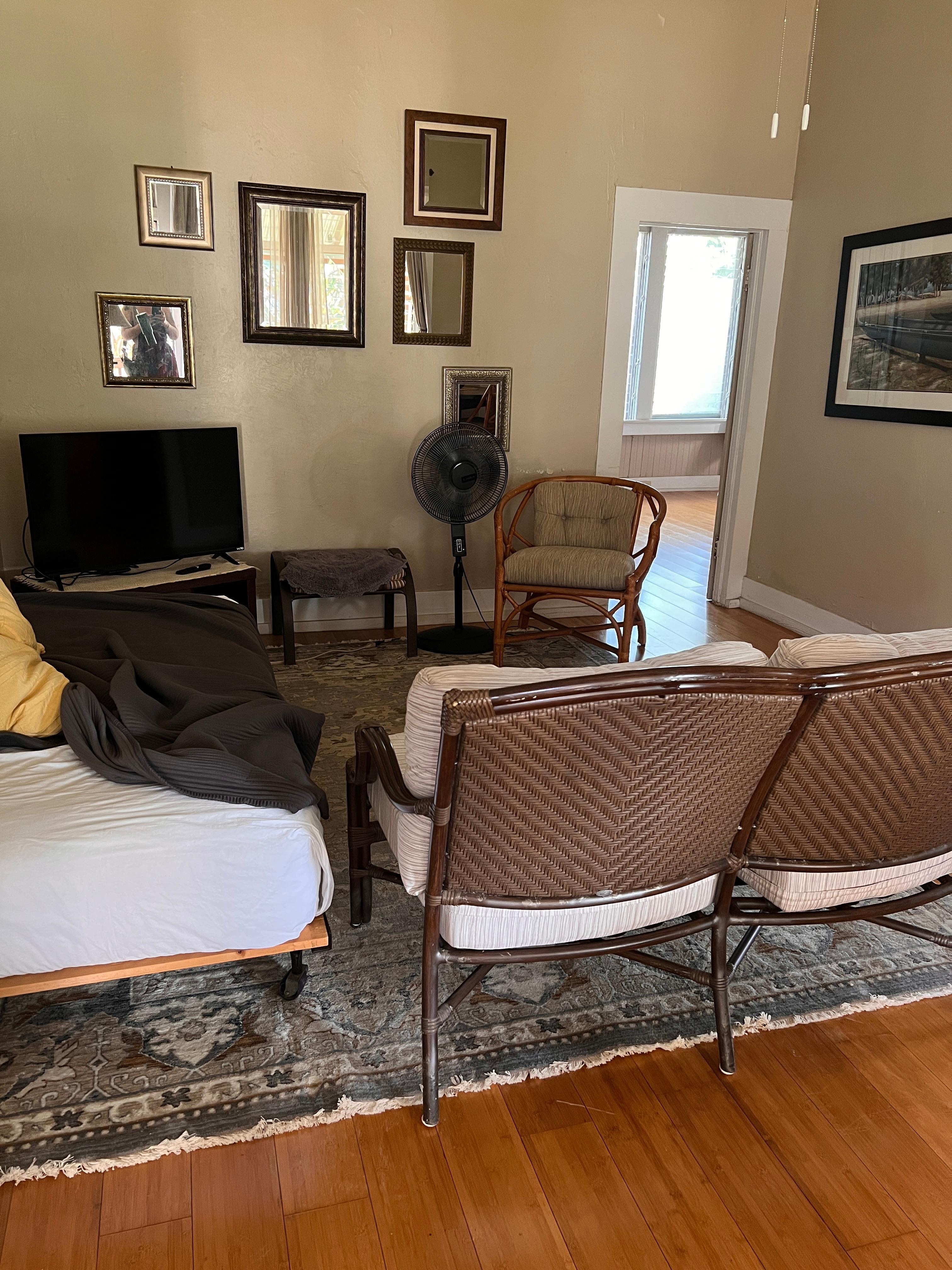 Dieses 1BR Haus hat ein Doppelbett und eine Klimaanlage im Schlafzimmer und ein Schlafsofa fĂŒr zusĂ€tzliche GĂ€ste im Wohnzimmer. Die Wohn-, Ess- und KĂŒchenbereiche sind ein offener und luftiger, lichtdurchfluteter Grundriss. Optimal gelegene Jalousiefenster erlauben den sĂŒĂen tropischen Passatwinden, durch das Haus zu blasen, so dass Sie wahrscheinlich nie diese A / C auf jeden Fall drehen wollen!