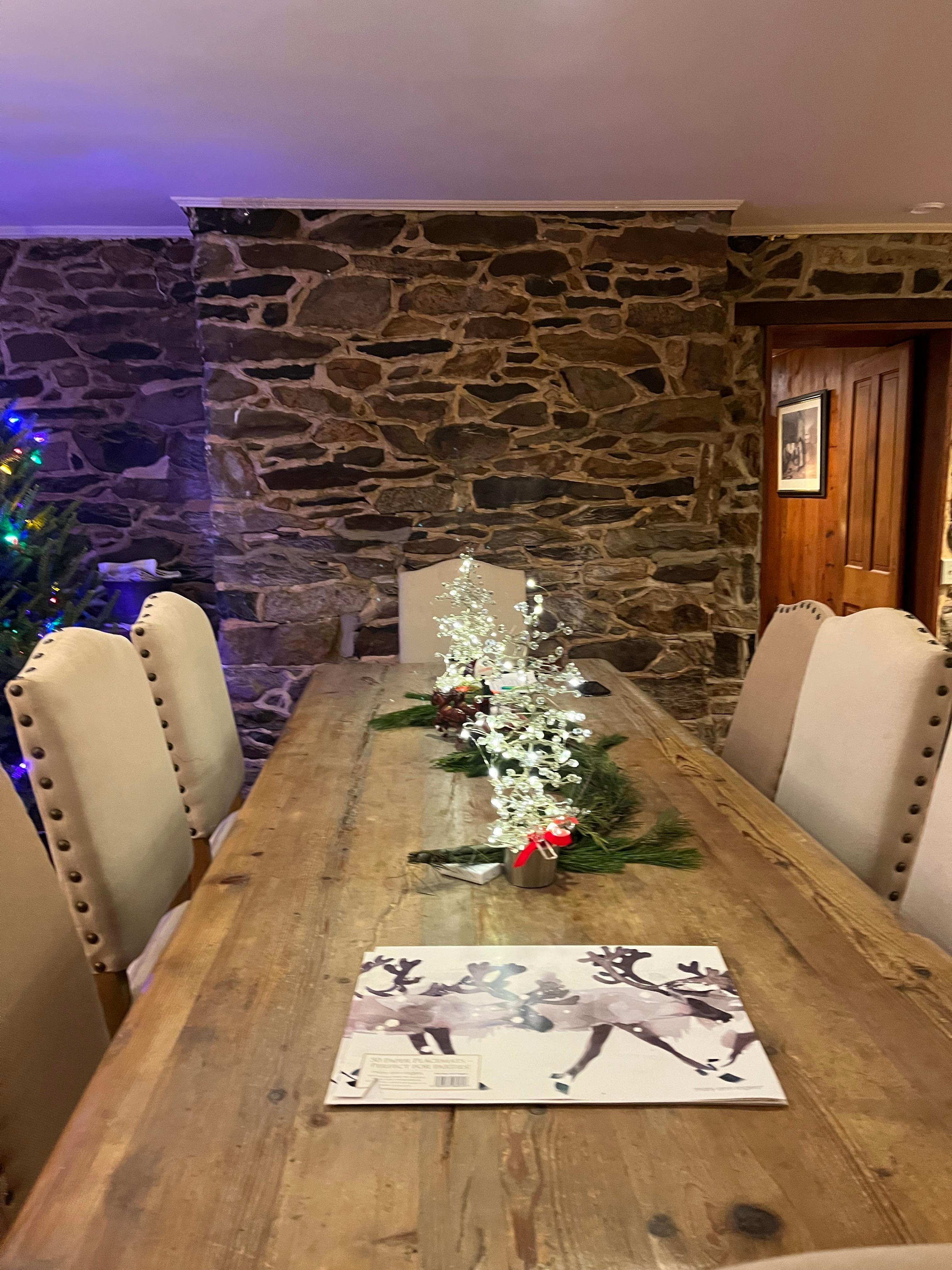 Wenn Sie den Tapeziertisch und die innere Steinmauer der Küche und das brodelnde Feuer sehen, dann ist das Mühlenhaus perfekt für Wärme und Zusammensein.