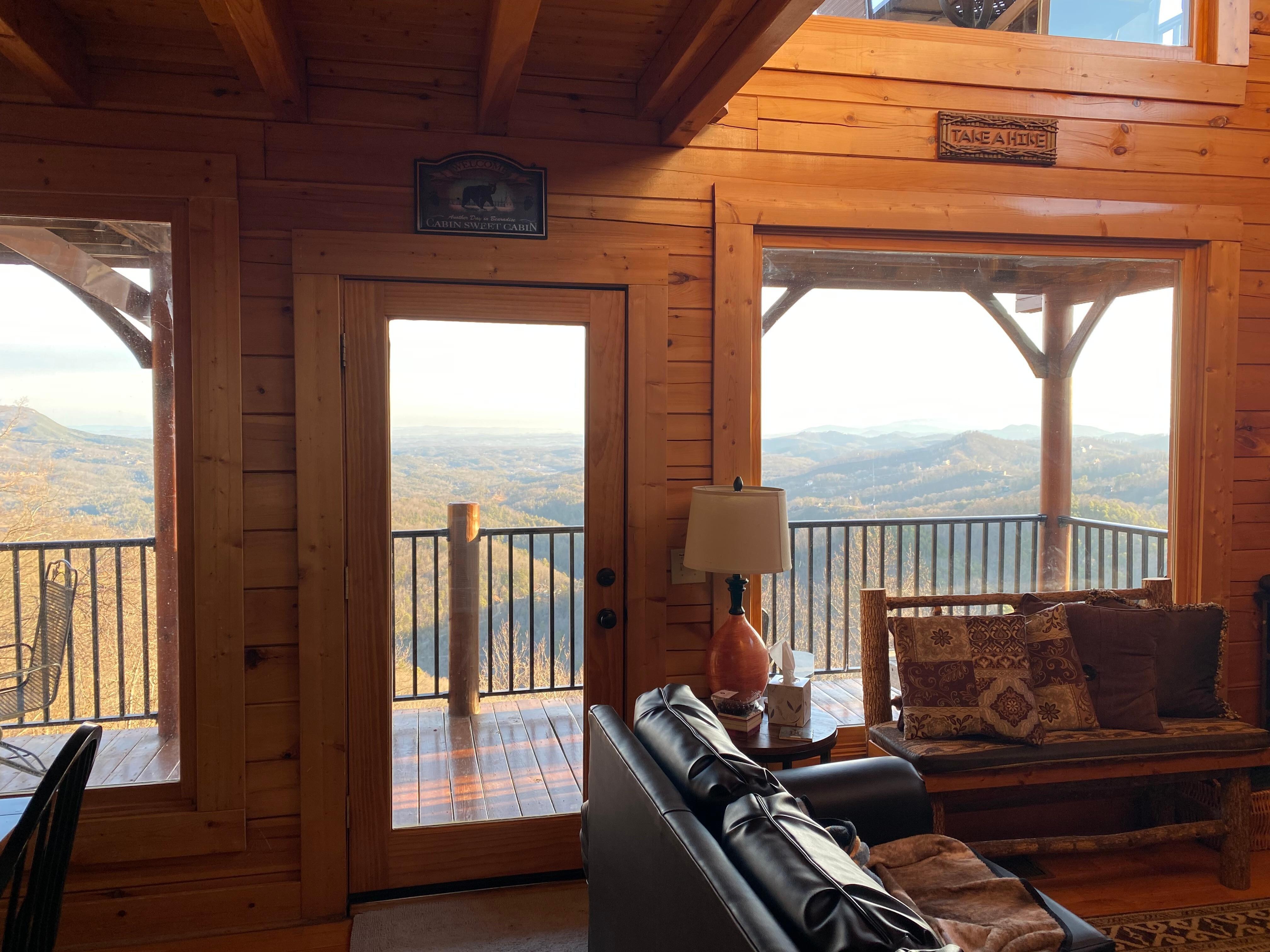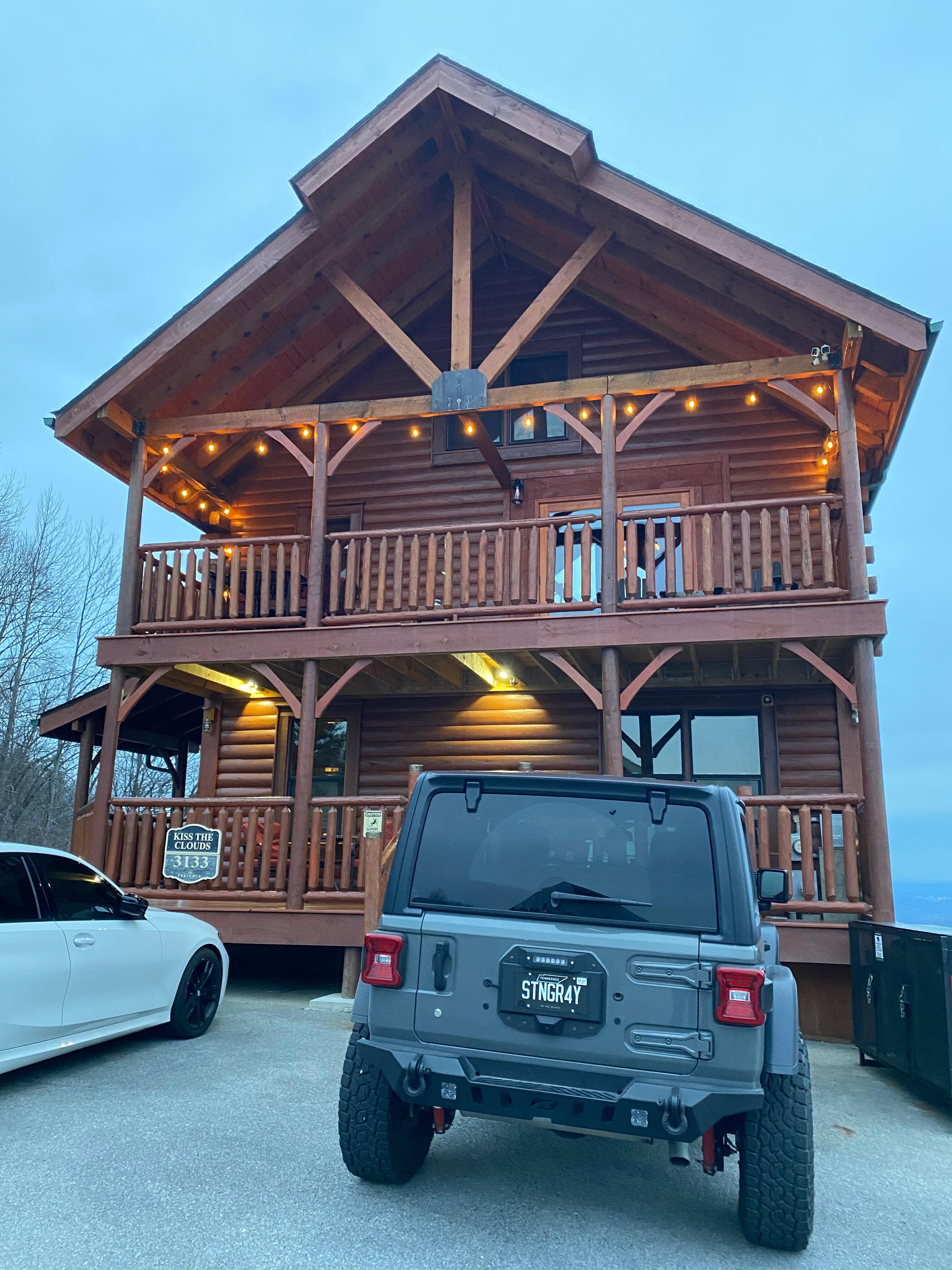 Die Hauptebene verfügt über einen offenen Grundriss. Während Ihres Aufenthalts im "Kiss the Clouds" werden Sie Annehmlichkeiten wie einen Whirlpool, einen Whirlpool im Freien, zwei geräumige Terrassen, einen elektrischen Steinkamin, gewölbte Kathedralendecken, Wände und Decken mit Nut und Feder, raumhohe Glasfenster und einen Innenbereich erleben unserer Meinung nach einige der besten Aussichten auf die Great Smoky Mountains.