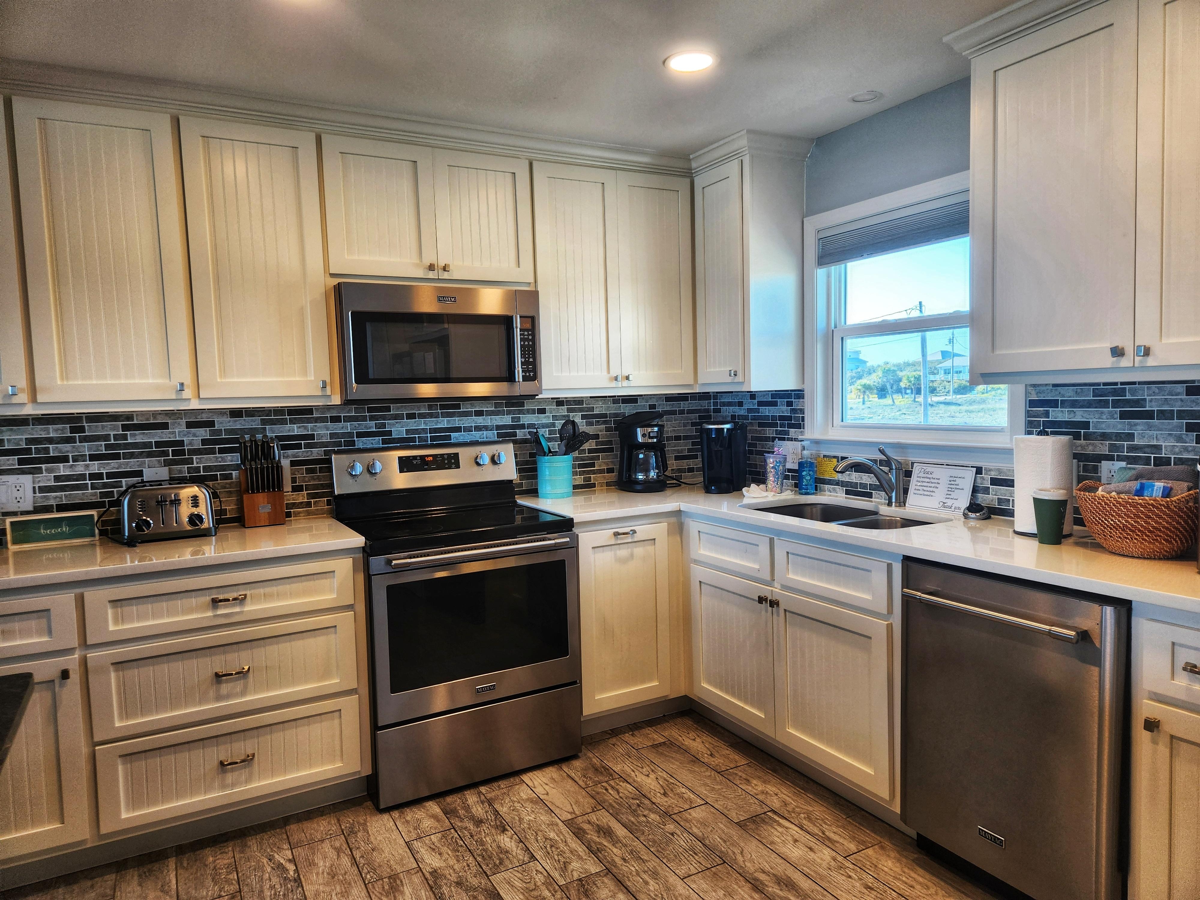 Palmetto Dunes is THE place to stay!! From the time you open the front door until you close the blinds at night, you are surrounded by the breathtaking views of the private beach right outside!The color theme to this house is very light and beachy without being overwhelming. The soft tea colors pair well with the gray wood looking flooring throughout the house. The kitchen is well stocked with plates, bowls, cups, glasses, pots and pans, baking dishes and utensils of all sorts so you're covered with not only the necessities but those extra little things that you may have forgotten. (Plastic sandwich bags, tin foil, paper towels, trash bags)There is a dishwasher and washer and dryer.There is a regular coffee maker AND a Keurig. There are some coffee filters and sugar and sugar alternatives provided until you can run to the store to get some more.The set up for this house is perfect for both families and friends! There are four bedrooms and two large bathrooms. They are on opposite sides of the house with the open kitchen and living room area in-between them. There are 2 master bedrooms on each side with the unobstructed view of the beach! One bathroom has a tub/shower and the other one has a shower with seat and rain shower head. Shampoo, conditioner and a limited amount of toilet paper is provided until you can get to the store to purchase some. The covered back patio with beach view was family fav. Charcoal grill and beach toys for kids to use.Very clean!