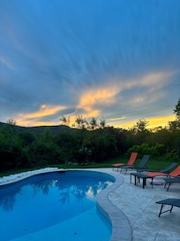 Sie werden einen Park von über 5000 m² haben, privaten Poolbereich mit herrlichem Blick auf der Kette des Coutach, sein Poolhaus und Sommerküche (Kühlschrank, Gas, Mikrowelle, Grill) von Land im Schatten Petanque, Spielplatz (Trampolin, Rutsche, Schaukel, Tischtennis). Die Anlagen sind mit den Gastgebern gemeinsam genutzt (außer dem Pool).