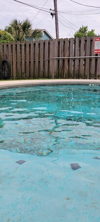 Wir haben einen gemeinsamen Pool für das Triplex in unserem tropischen Hinterhof mit Palmen und vielen Liegestühlen und einem Gartentisch mit Sonnenschirm und Stühlen. Der Pool ist kinderfreundlich und tiefes Ende ist 4 ft. Sie haben das Gefühl einer tropischen Oase. Wir haben eine Dusche unter dem Haus, wenn Sie den Strandsand abspülen möchten. Wir haben auch ein komplettes Bad mit Dusche im Erdgeschoss.