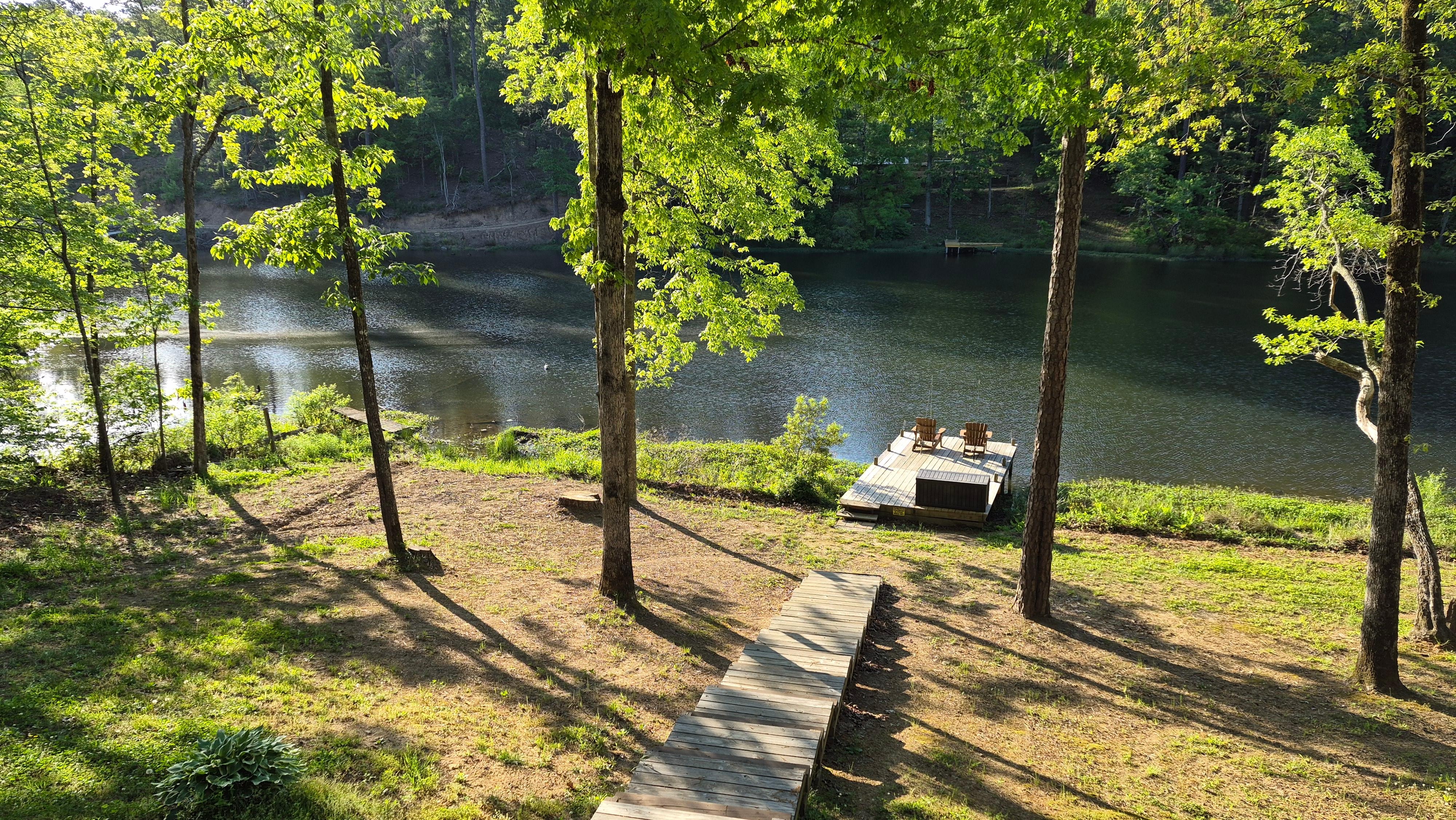 Chris loves to fish for catfish, bass, and bluegill off the dock. Nancy enjoys sitting on the back deck and watching the birds and other wildlife that happens by. The hummingbird feeders in the summer are always entertaining.