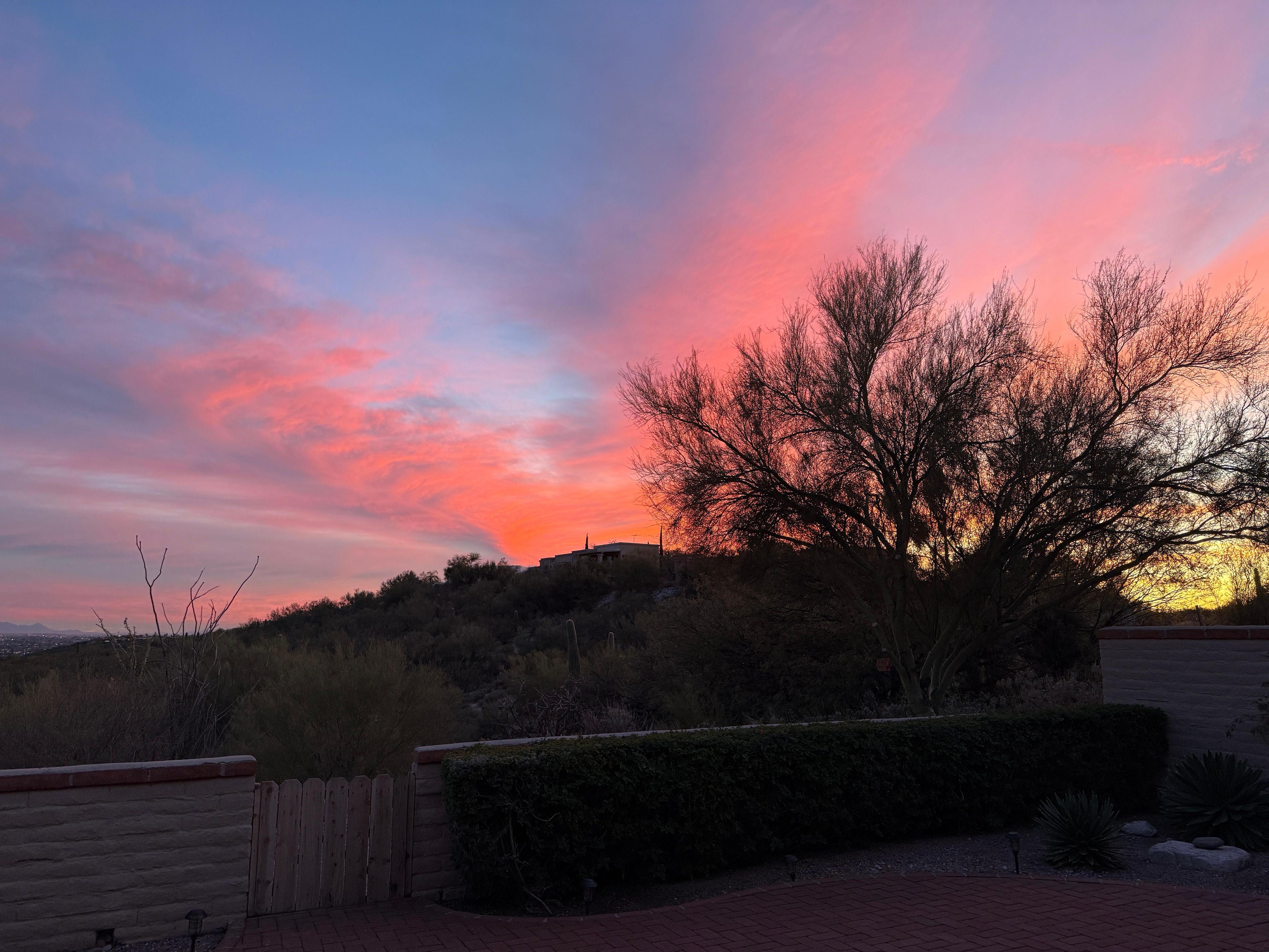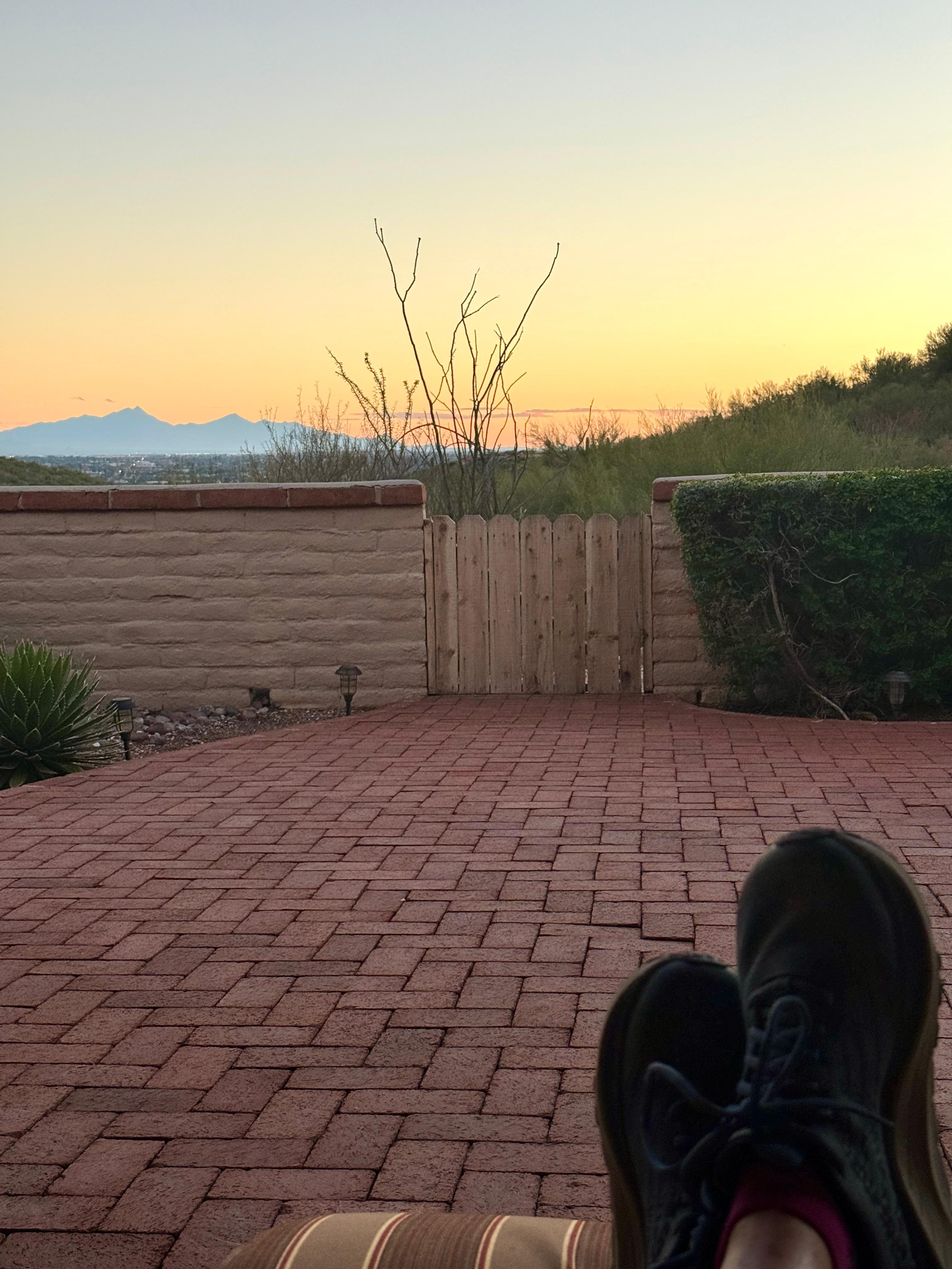 Sowohl vom Hauptschlafzimmer als auch vom Hauptwohnbereich aus ist die gemauerte Terrasse im Hinterhof mit atemberaubendem Blick auf die Stadt und die Berge im SĂŒden zugĂ€nglich. Dieser RĂŒckzugsort im Freien verfĂŒgt ĂŒber einen groĂen Tisch im Freien mit vier bequemen StĂŒhlen, einem Grill und zwei LiegestĂŒhlen. Entspannen Sie bei Ihrer morgendlichen Tasse Kaffee oder verbringen Sie einen ruhigen Abend mit unseren wunderschönen SonnenuntergĂ€ngen und Abendlichtern von Tucson in Arizona.