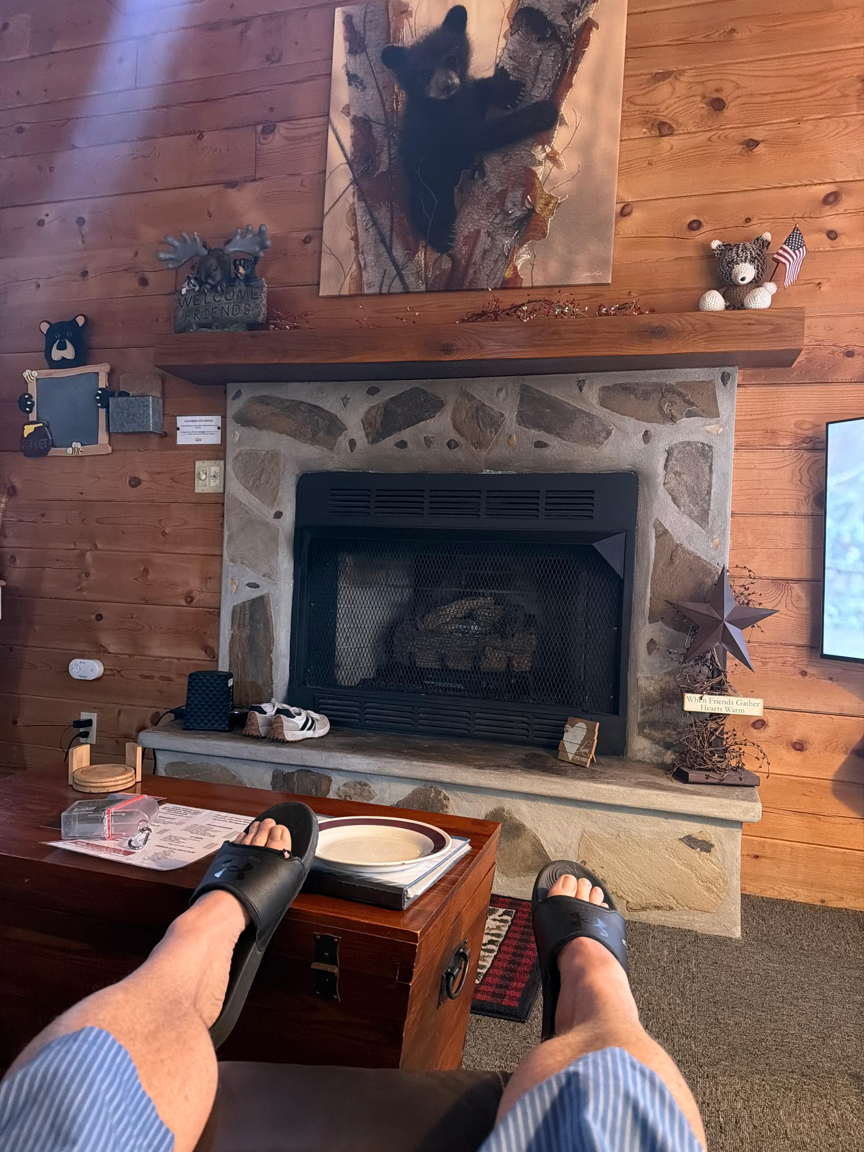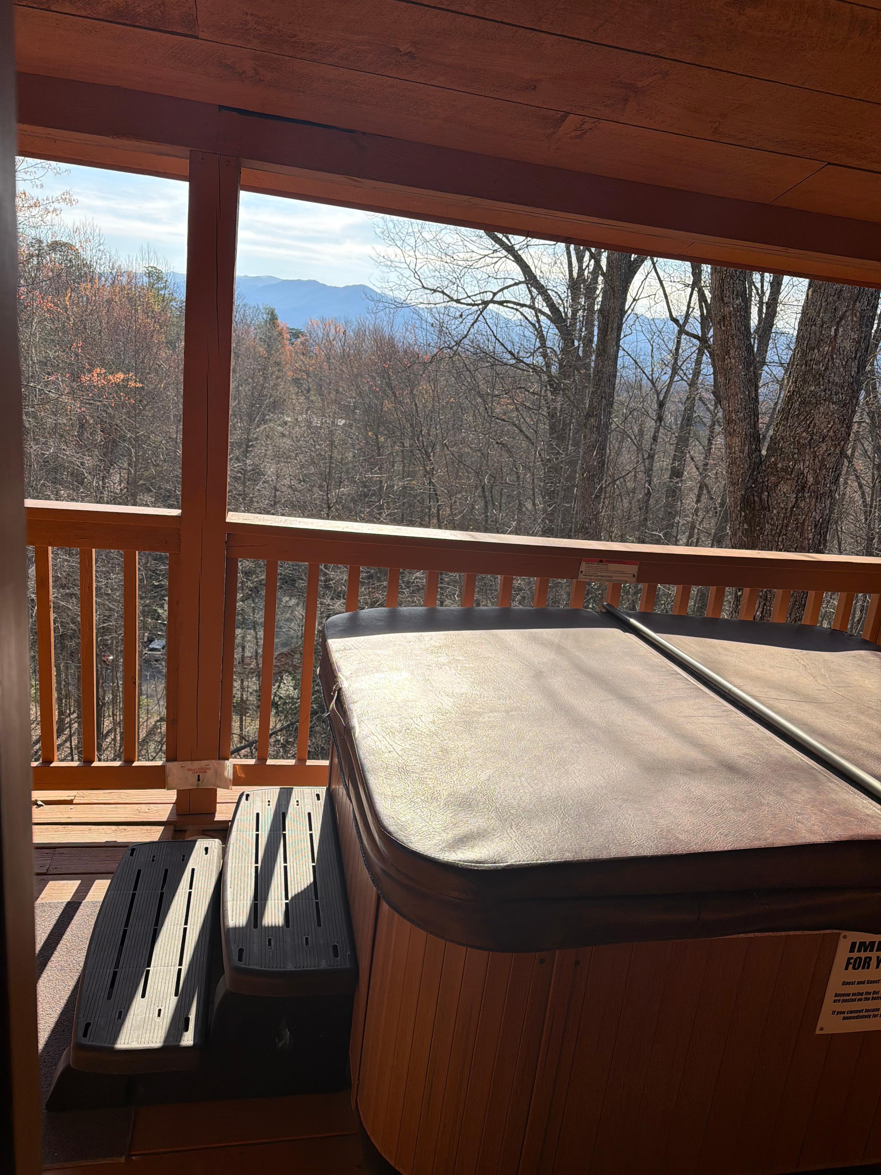 Wunderschöner Bergblick, großartige Lage im Kunst- und Handwerksviertel von Gatlinburg, Abgeschiedenheit am Ende der Straße, umgeben von hoch aufragenden Bäumen, liebenswert im Bärendekor dekoriert, der Sie zum Lächeln bringt. Zwei neue, wippbare Liege für Wipp und Komfort. Der Whirlpool auf dem Achterdeck überblickt die Berge. Ein zweites Deck im Erdgeschoss und eine große Veranda mit Wippen. Keurig-Kaffeemaschine mit Kaffeepads, komfortables Kingsize-Bett mit hochwertiger Bettwäsche und Bettbezug, sehr sauber, Flachbildfernseher und Blue Ray