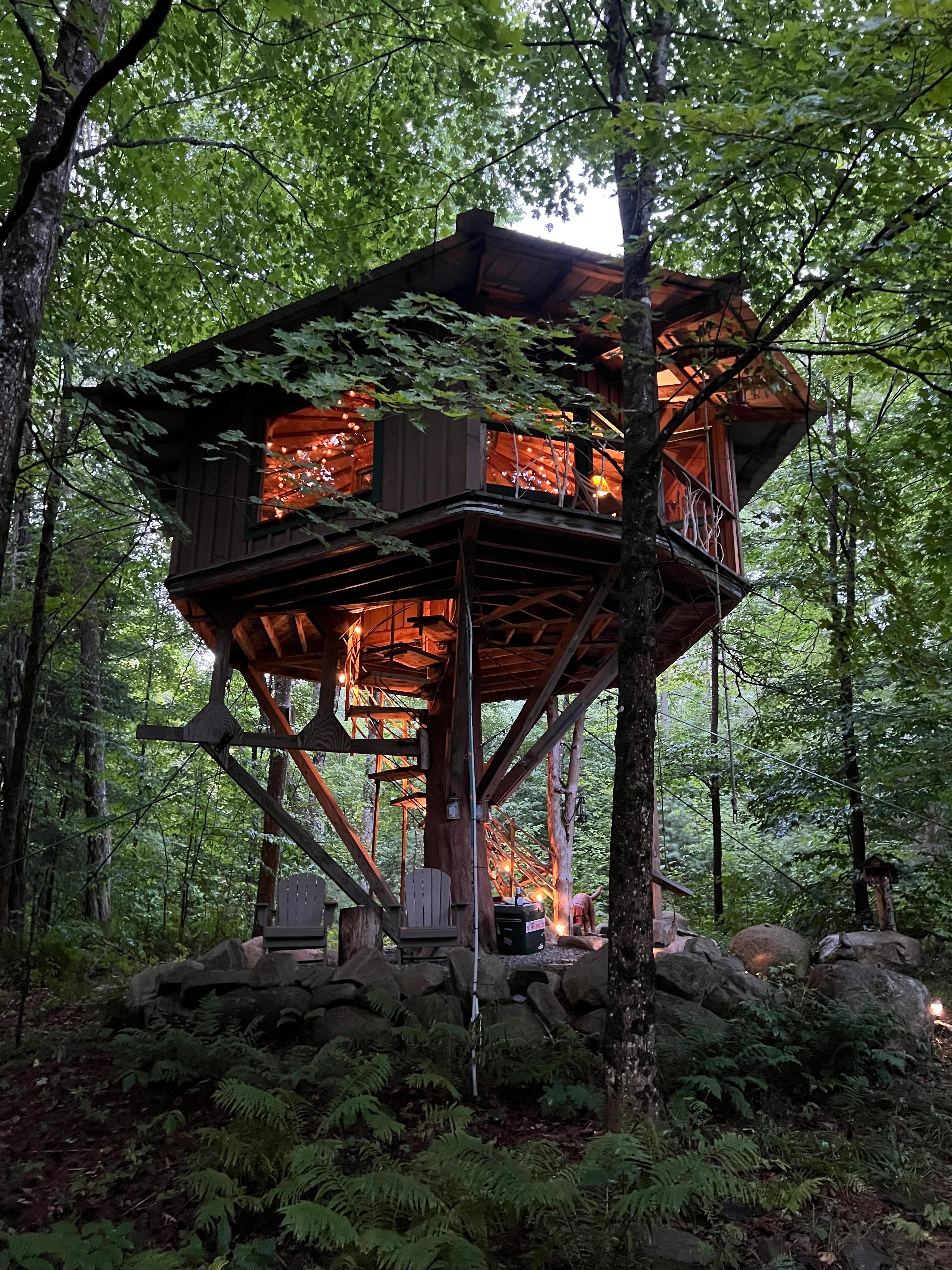 Das ländliche, aber zentral gelegene Terabithia Treehouse befindet sich sieben Meilen nördlich des Paul Smiths College auf der Rt. 30 Sie befinden sich in einem der abwechslungsreichsten Wildnisgebiete des Parks.