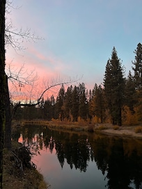 My family is originally from Nevada City, in the foothills. We spent our summers up in the mountains when I was growing up. Although I've travelled and lived all over the world, I still consider the Sierras some of the most beautiful country on the Earth. Plumes Pines, here at Graeagle, is the perfect place. The location is spectacular. I always dreamed of owning a cabin on the river and felt so blessed when this property came up for sale a few years ago. The views are to die for. I love sitting on the couch in the morning, drinking coffee and watching the river flow by. I can walk out to the river and watch the birds and wildlife from my own backyard.