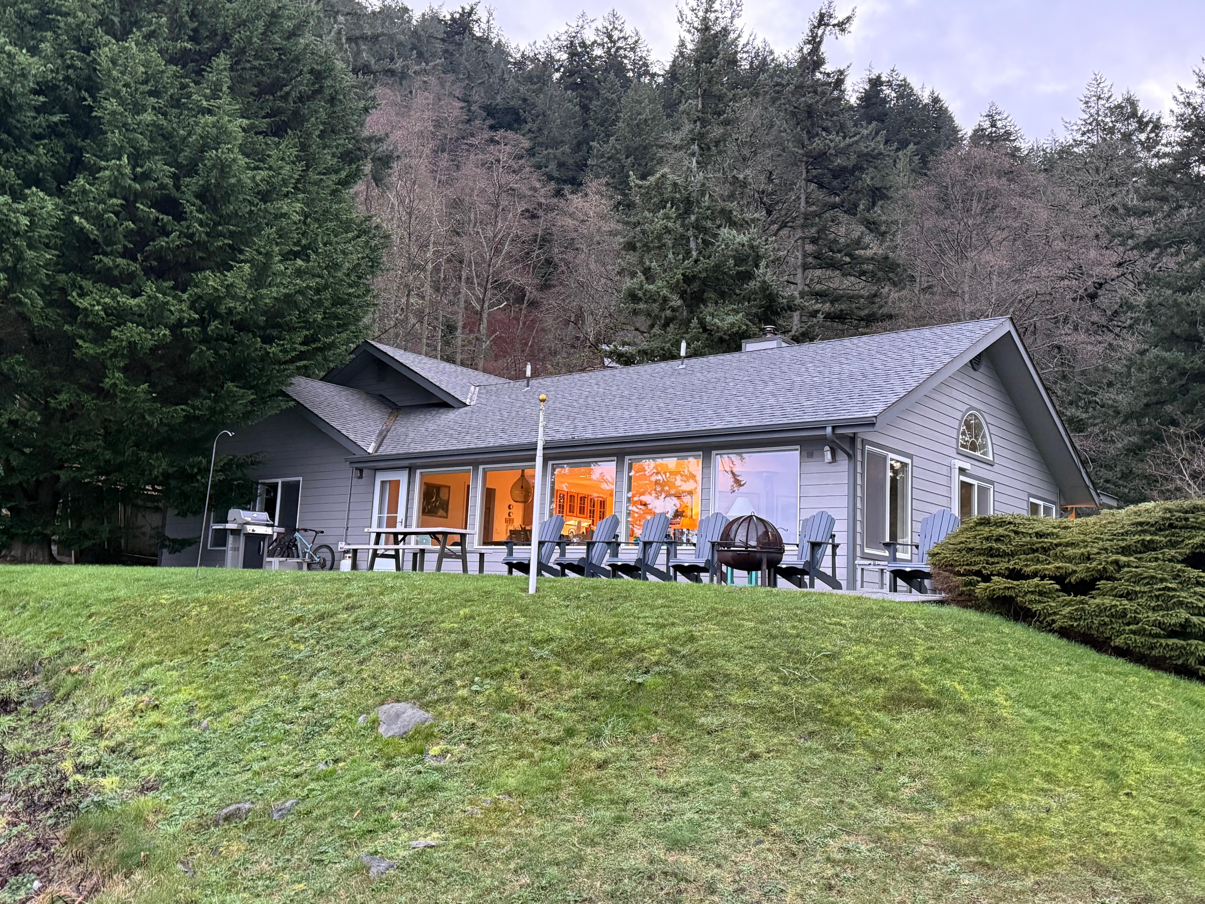 Mit Blick auf die Insel Sucia und die wunderschöne kanadische Küste im Hintergrund ist dieses wundervolle Haus das, was Urlaub auf der Insel Orcas ausmacht. Beobachten Sie die vorbeifahrenden Boote, während Sie Ihre Limonade oder Ihren Cocktail auf der großen Terrasse am Wasser direkt über dem Strand genießen. Oder gehen Sie jeden Morgen mit Kaffee in der Hand den einfachen Weg entlang, um den Wellen am wunderschönen Kiesstrand zu lauschen.
