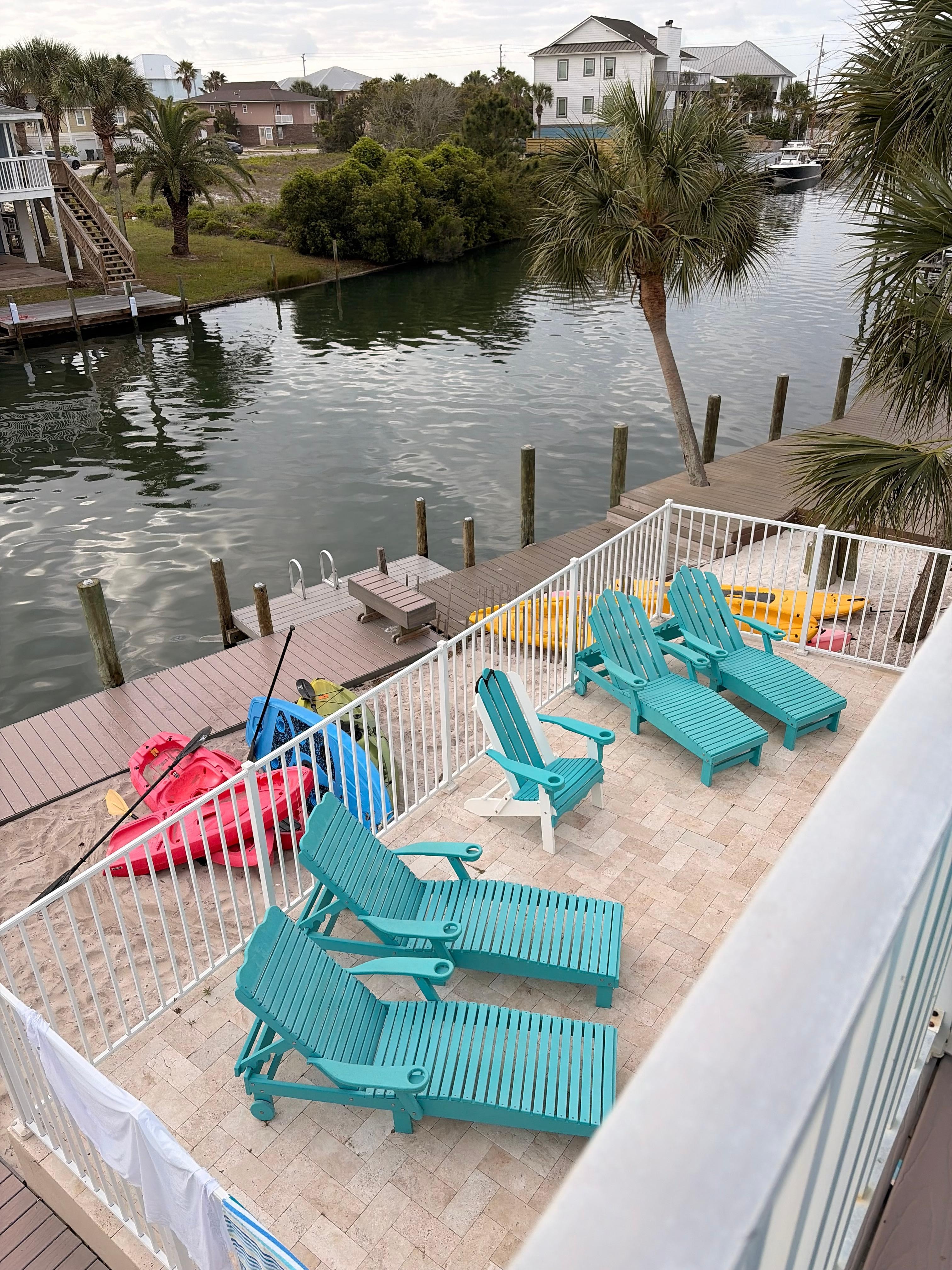 Es gibt reichlich Sitzgelegenheiten mit Blick auf das Wasser von 3 Balkonen. Ring Toss und Bean Bag Corn Hole Boards sorgen für Unterhaltung.