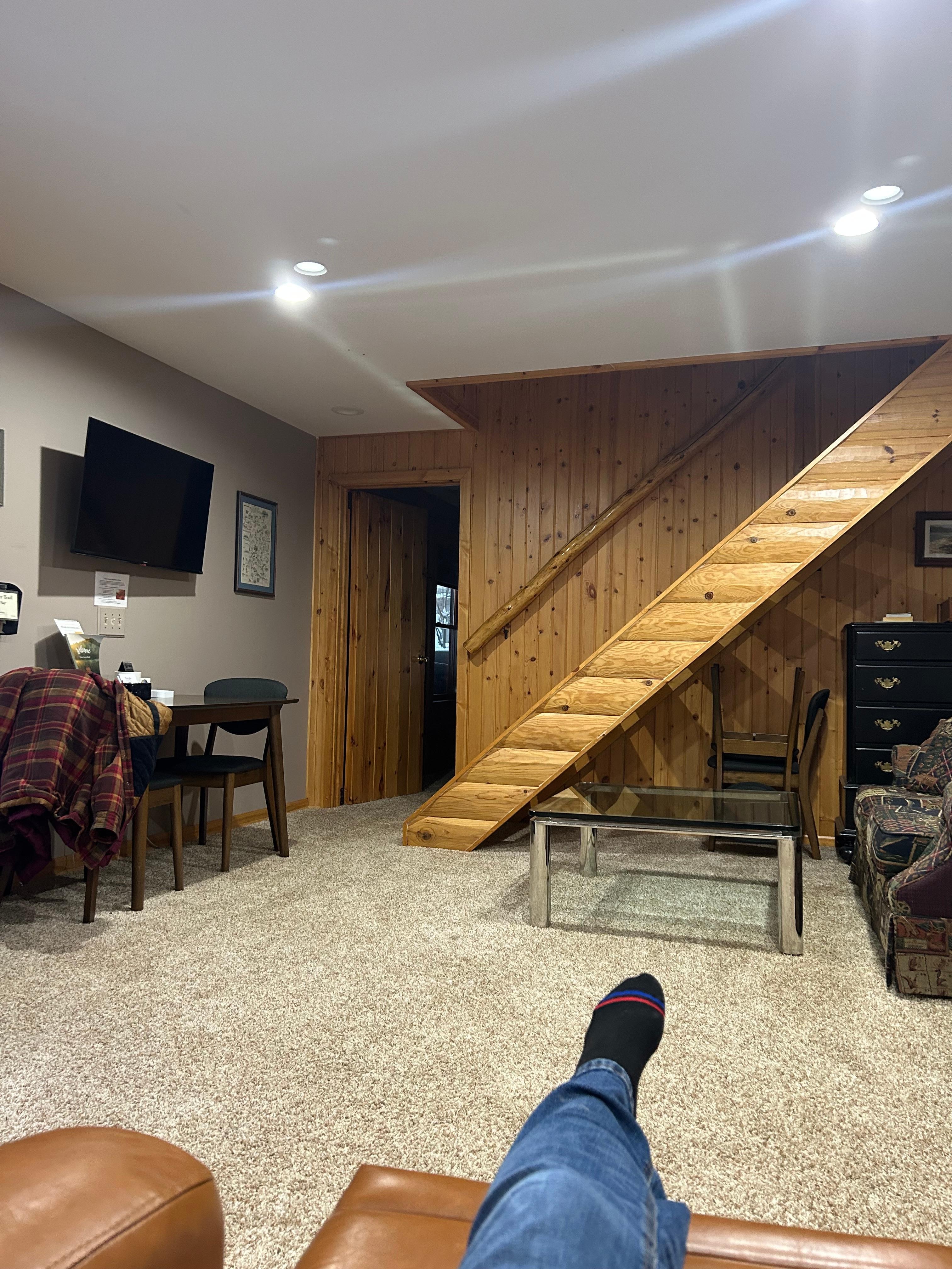 Genießen Sie es, dieses Haus am Fluss Ausable zu teilen, indem Sie in einem privaten Streik auf einer niedrigeren Ebene übernachten. Wunderschöne Suite, die zum berühmten Ausable River Holy Waters führt. Genießen Sie diese 200 ft Flussufer. In der Nähe der Stadt mit Brauereien, Wandern, Kajak- und Kanuverleih und Angeln, Skifahren, Schneeschuhwandern. Auf Anfrage stellen wir Ihnen zwei Paar Schneeschuhe zur Verfügung. Northbound vermietet auch Schneeschuhe. Abstellfläche für Ihren Motorschlittenanhänger. Nah am Hinterkopf. Diese Suite bietet Ihnen die nötige Privatsphäre, getrennt von den oberen Hauptwohnbereichen. Genießen Sie die Privatsphäre Ihres eigenen Badezimmers mit beheizter Whirlpool-Badewanne und Stand-up-Dusche mit zwei Duschköpfen. Wohnbereich mit Couch, Liegestühlen und Schrankbett für mehr Gäste. Bereich mit Keurig, Mikrowelle und Kühlschrank. Freundliche Ziegen und Hühner warten auf Ihre Reste! Der flussseitige Eingang ist leicht abfallend.