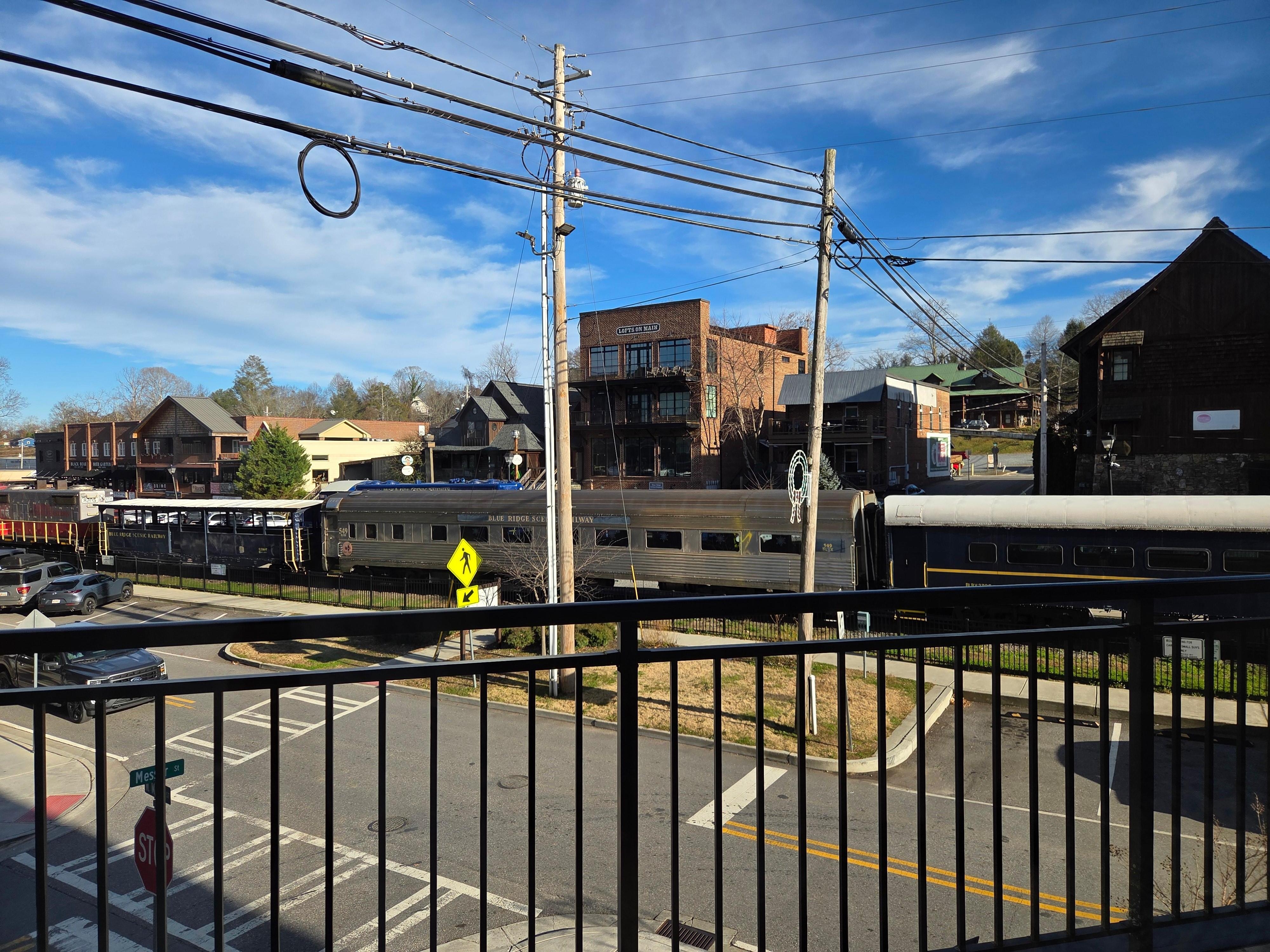 It also has a large balcony with patio furniture to enjoy the view of the train and beautiful downtown Blue Ridge!