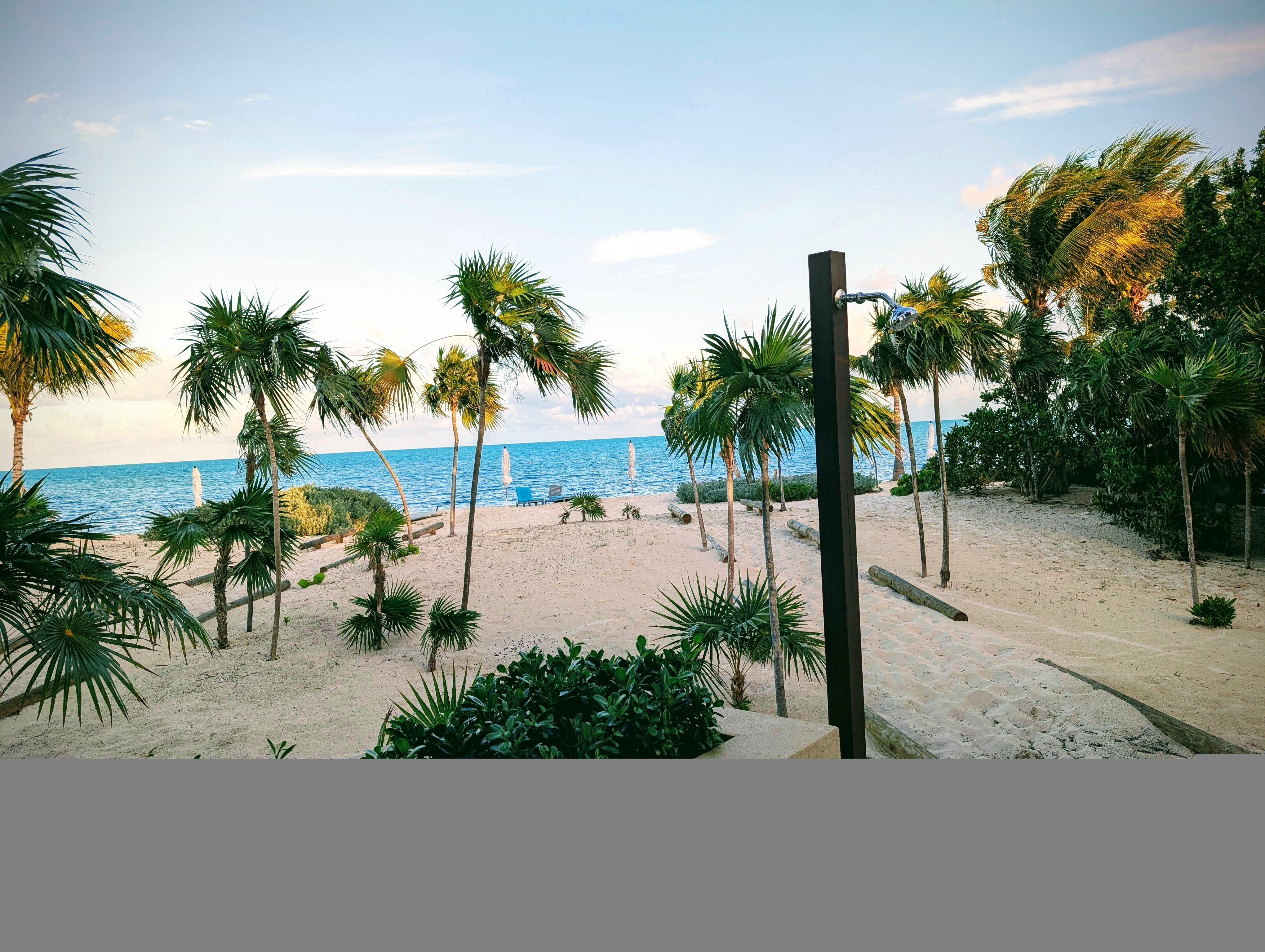 The bungalow is brand new with high end finishes, lovely plunge pool, and very spacious with options for both sun and shade. The setting is very private and outdoor shower is great. The only downside was an inordinate amount of seaweed accumulation on the beach making it undesirable. We realize this is beyond the control of Swaying Palms, and not sure if it’s seasonal or characteristic of Long Bay. Overall a very relaxing stay with magnificent full moonrise over the water.