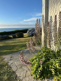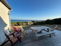 Ein großer Garten rund um das Haus mit privatem und direktem Zugang zum Strand. Gartenmöbel, Picknicktisch und Grill vorhanden.