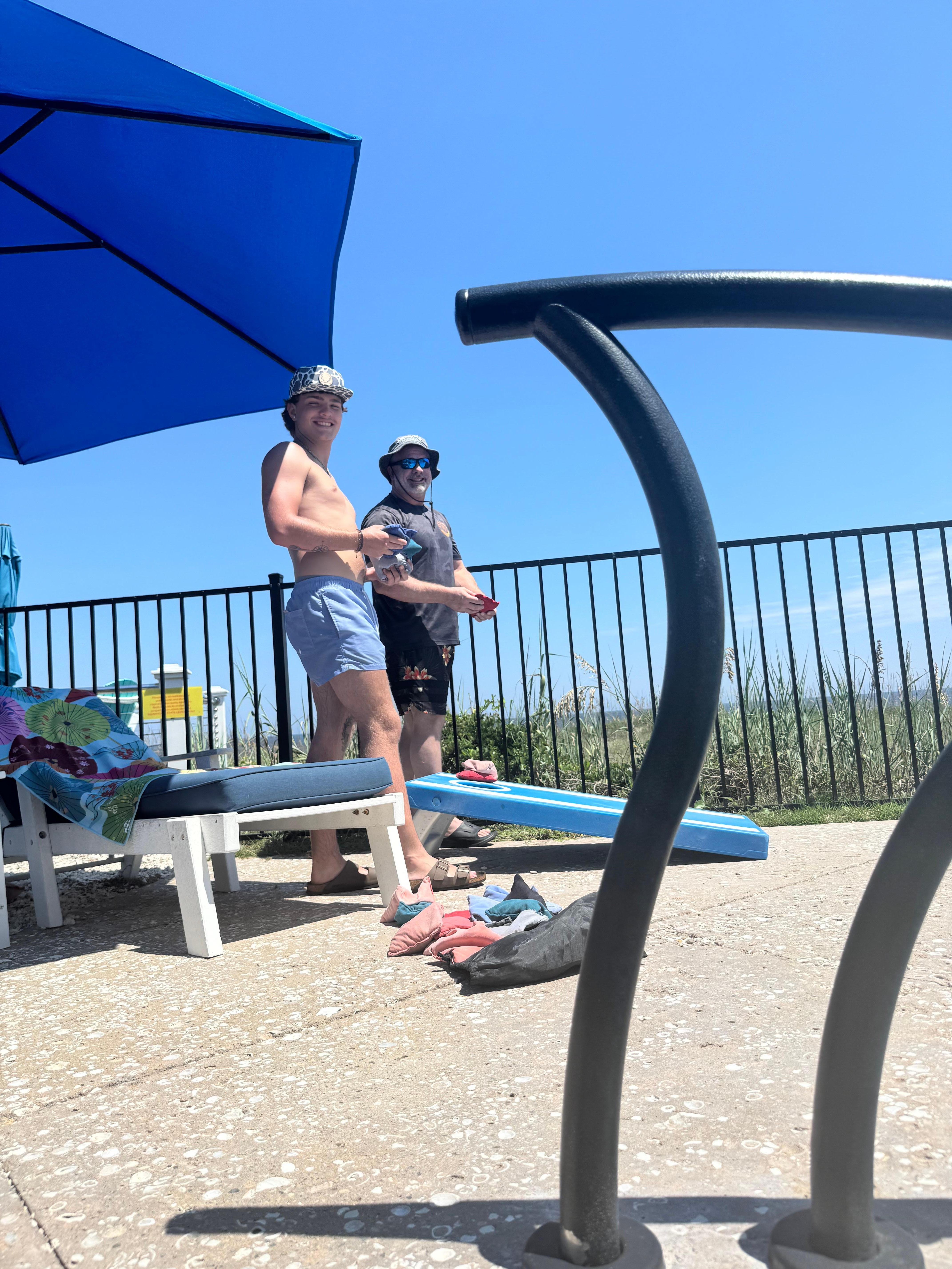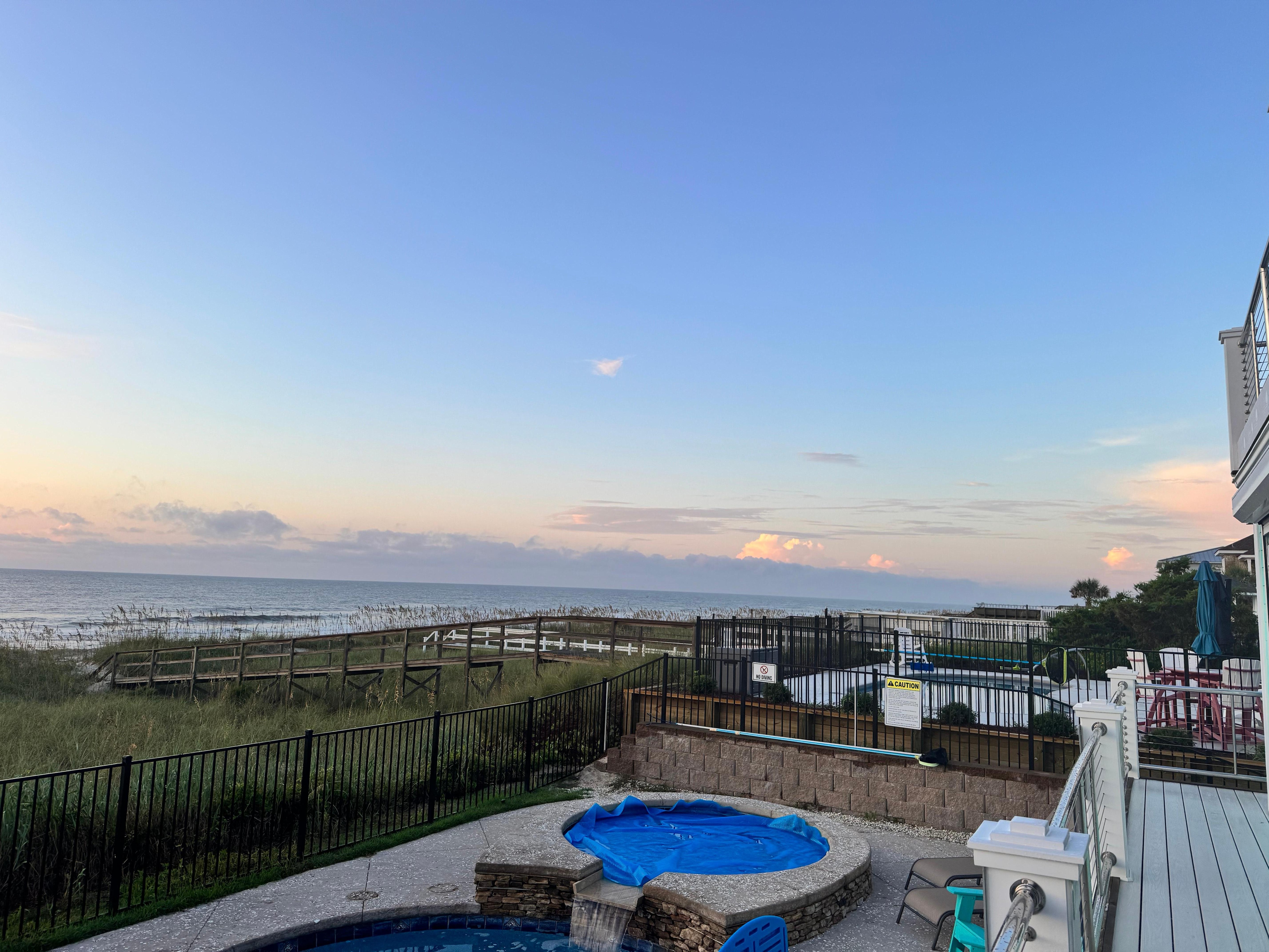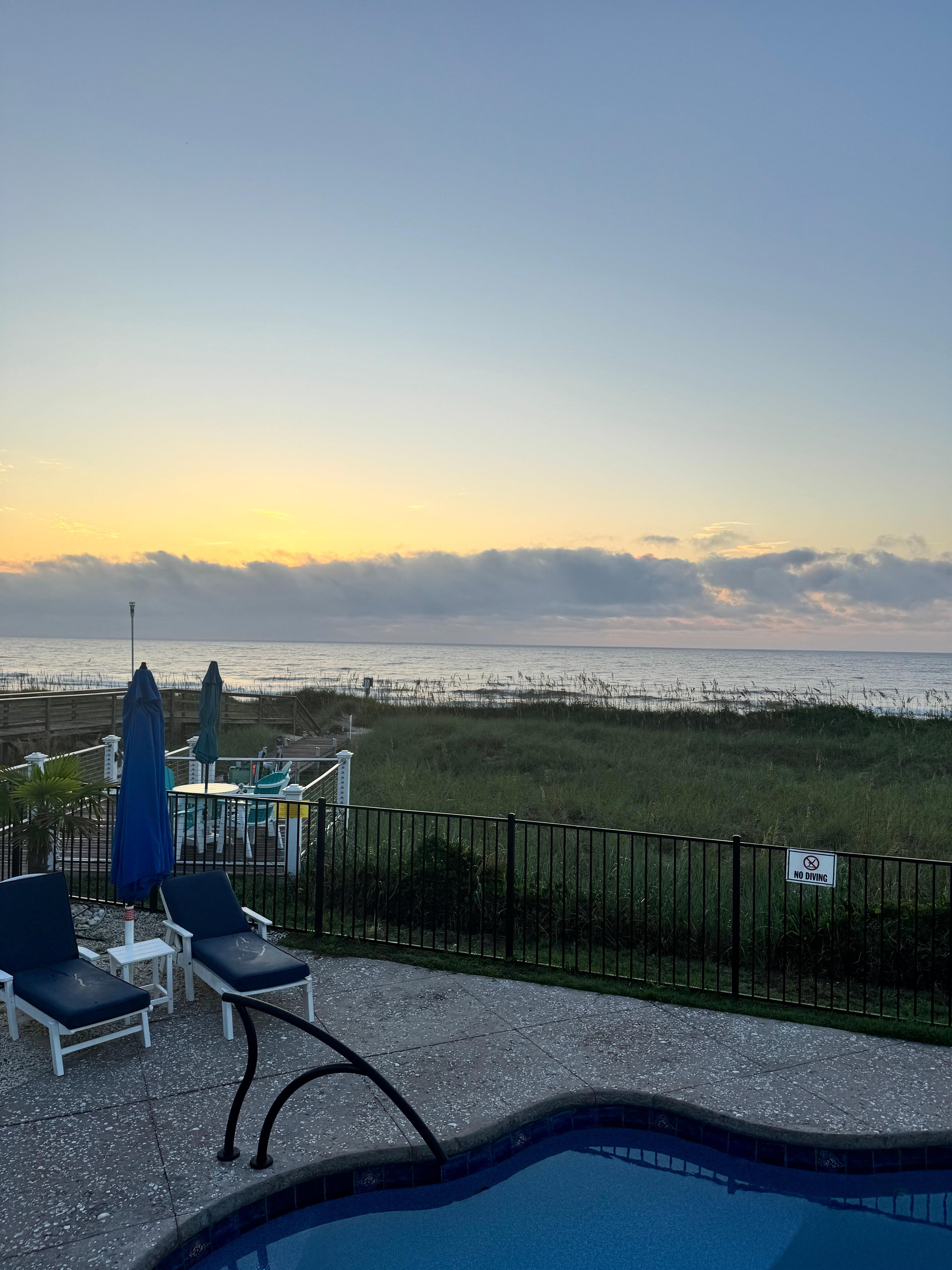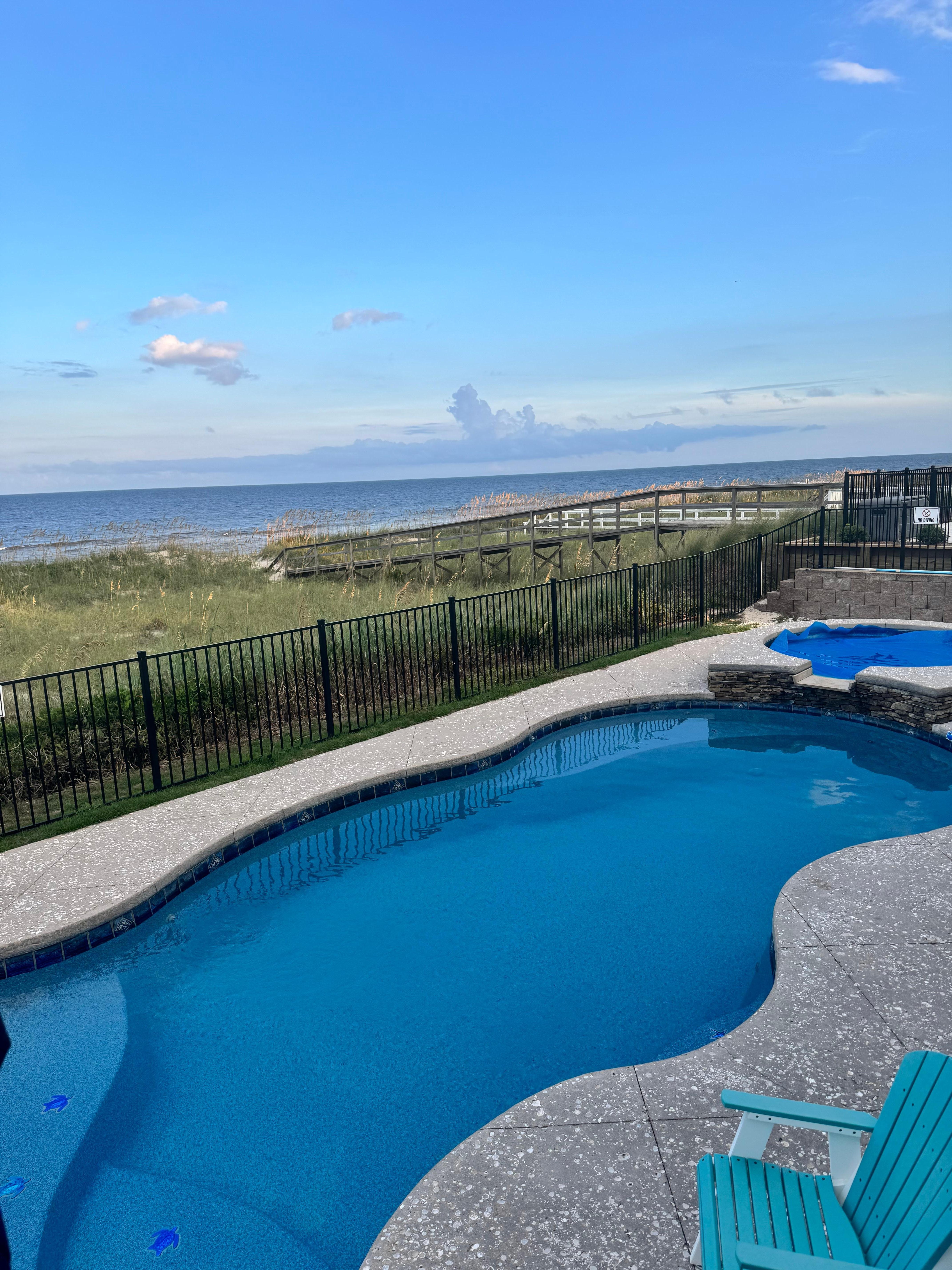 Dieses große, schöne Haus am Meer mit Pool und Whirlpool bietet alles, was Sie brauchen, und befindet sich auf halbem Weg zwischen dem Kure Beach Pier und der berühmten Promenade von Carolina Beach. Es gibt drei separate Versammlungsbereiche für große Gruppen, einen auf jeder Etage. Der Hauptwohnbereich bietet einen weiten Blick auf den Pool und das Meer und bietet Platz für 13 Personen. Das Erdgeschoss verfügt über einen großen Aufenthaltsraum mit Platz für 8 Personen rund um den Fernseher und einen runden Tisch für 6 Personen zum Spielen. Die Höhle im 3. Stock verfügt über elektrische Liegen für ernsthaftes Fernsehen für 5 Personen. Eine Glasschiebetür führt zu einem Deck am Meer.