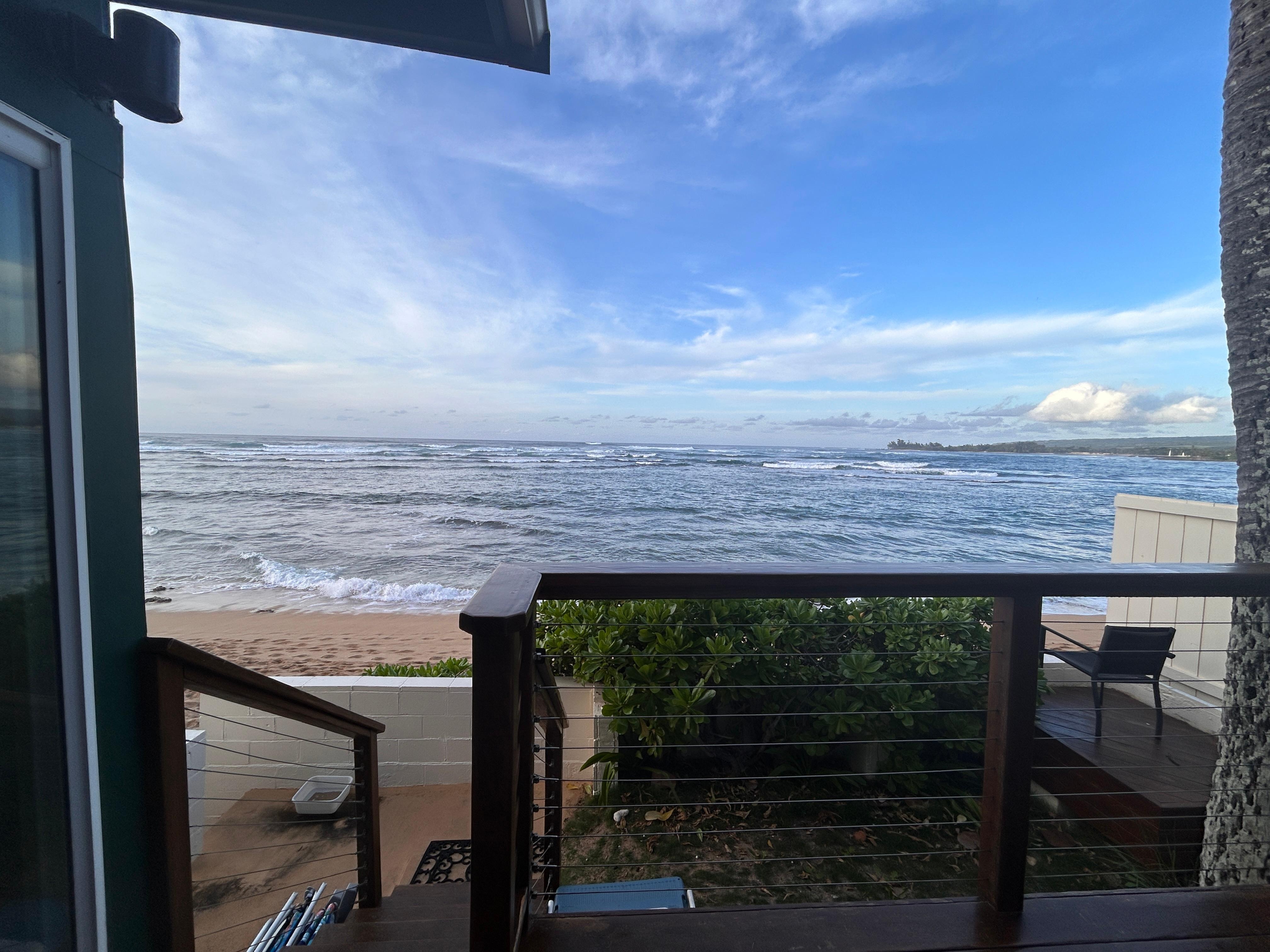 Location, location, location! This lovely duplex home is perfectly situated on a beautiful white sandy beach, at the end of a quit cull de sac. You will find all the space and privacy that one needs to enjoy a nice peaceful holiday in order to sit back, relax and recharge your batteries. Historic Haleiwa Town rests in the heart of the north shore with Haleiwa being a 3 minute drive away and all the beautiful surf/swim beaches if not in front of the house then a mere 5 - 15 minute drive away (30 minute drive to the airport) . Haleiwa is a blend of cafés, art galleries, boutiques, and shops with remnants of the old Hawaiian days.