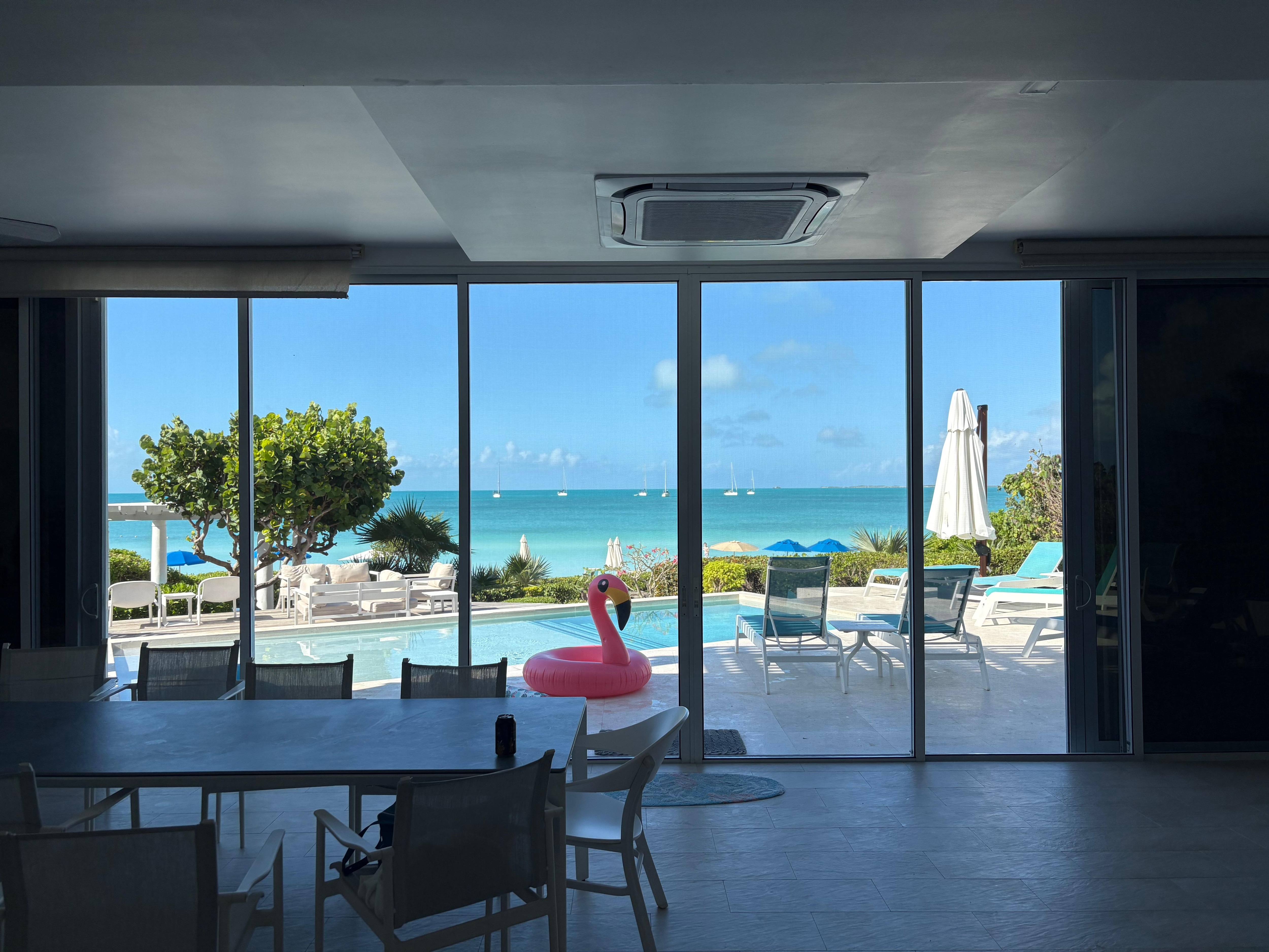 Das offene Design des Hauses ermöglicht von jedem Zimmer aus einen Blick auf das Meer, beginnend in der Minute, in der Sie durch den Eingang gehen. Die 32-Fuß-Wand von Glastüren kann geöffnet werden, um einen nahtlosen Fluss zwischen Innen und Außen zu gewährleisten, wobei die Bildschirme geöffnet oder geschlossen werden. Der Unterhaltungsbereich verfügt über einen Flachbild-Kabel-TV und eine Sonos-Stereoanlage, über die Sie Ihre Musik streamen oder Ihr eigenes Gerät anschließen können.