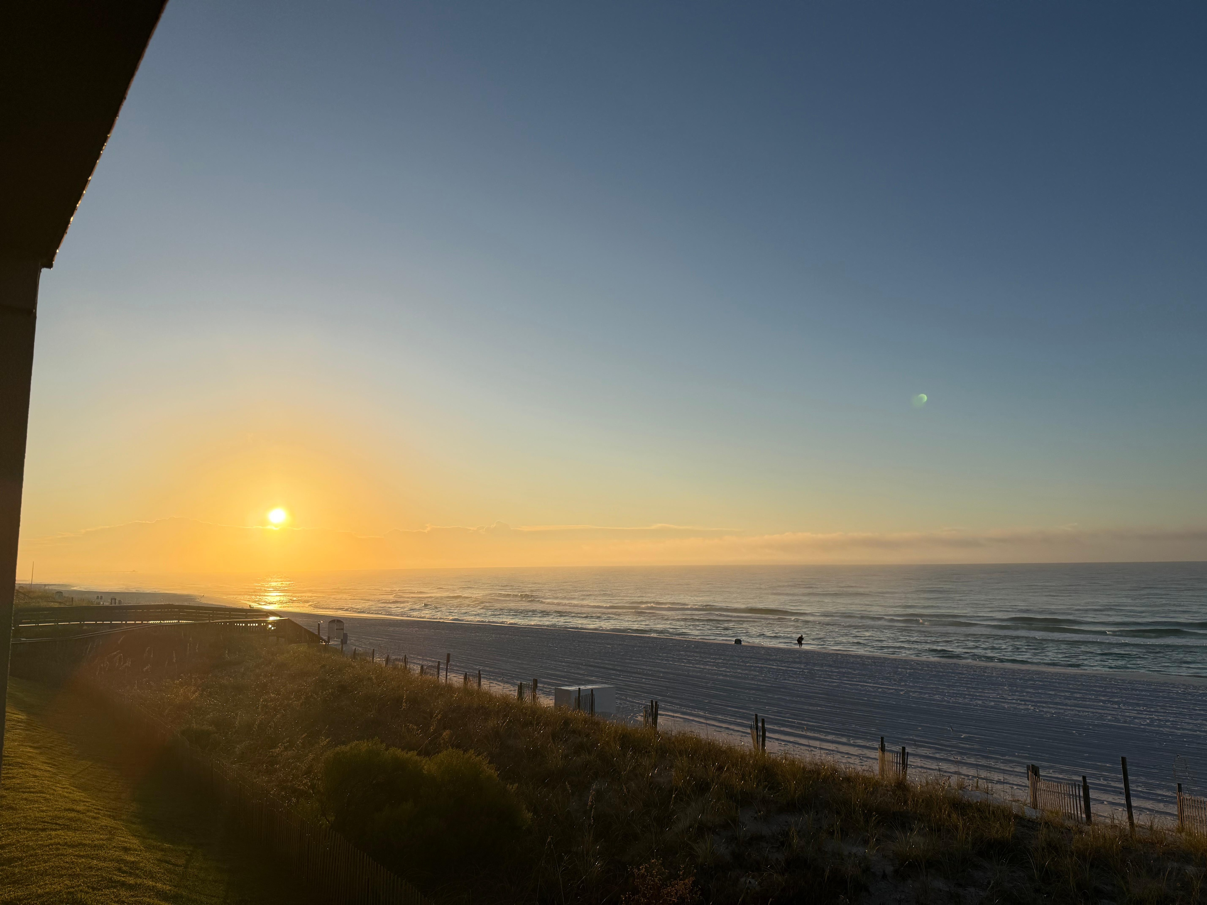 Property was clean and complex was quite. The view from the balcony was gorgeous. Every morning having coffee saw the dolphins swimming. Beach was very clean and the beach chairs and umbrellas that were supplied was a nice touch. Would booked this rental again.