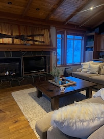 • Our living room is equipped with 2 bar fridges, cocktail glasses, audio distribution to five zones with individual control of volume and source in each zone, gas fireplace, TV, board games, DVDs, and books as well, so there is something for everyone to do!