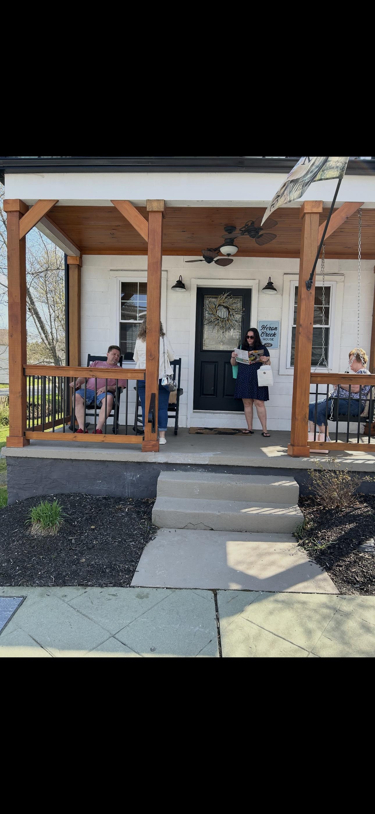 It was really lovely. The house is beautiful and located on the main street of town, just steps away from an amazing coffee shop and fabulous lunch and dinner places.The kitchen looked well supplied, tho we didn’t cook. The twin beds are in the first floor, with a bathroom; you have to walk through the bedroom to get to the bathroom. The second floor has two lovely bedrooms, which each have a bathroom. My mom was able to climb the four steps with a nice railing to get into the house and the second story steps with a nice railing to get up to the master bedroom, and one step down to dining room. Two zone air conditioning (upstairs and downstairs had their own independent thermostats) meant everybody was comfortable.The washer and dryer worked well. The water pressure and hot water was excellent. We loved the front porch rocker and swing, watching people walk by. We didn’t use any of the other amenities, but they looked nice.The staff was reachable by phone or text ans responded quickly. 5/5 stars