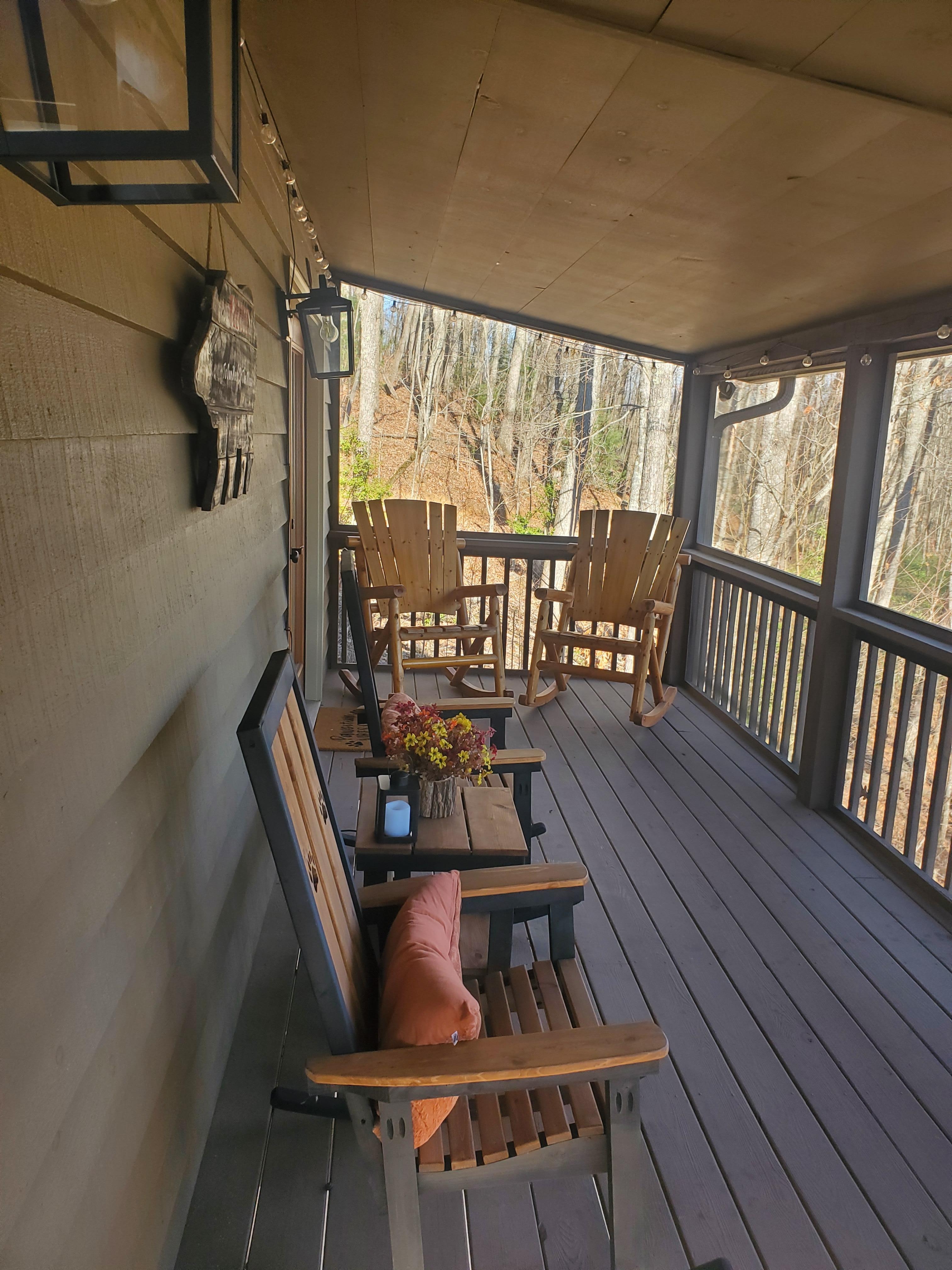 Upon arrival, you'll be greeted by the breathtaking beauty of the Blue Ridge Mountains, visible from both spacious screened porches and the lower-level deck. Relax in the comfortable rockers or gather around the outdoor dining area while soaking in the stunning views. For a touch of romance, slip into the brand-new hot tub on the lower level and unwind with your loved one as you savor a drink of your choice. For some friendly competition, challenge your companions to a game of cornhole or gather around the fire pit under the starlit sky for marshmallow roasting and cherished moments of laughter.