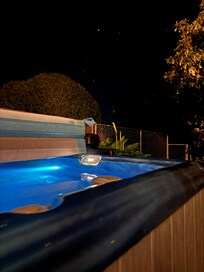 Gästehaus mit einem Schlafzimmer und angeschlossener Garage. Einheit verfügt über vier Zimmer: Bad mit Dusche, voll ausgestattete Küche, Wohnzimmer und Schlafzimmer mit Kingsize-Bett. Die Küche, das Wohnzimmer und das Spa im Freien bieten Meerblick. Privates Deck und Spa.