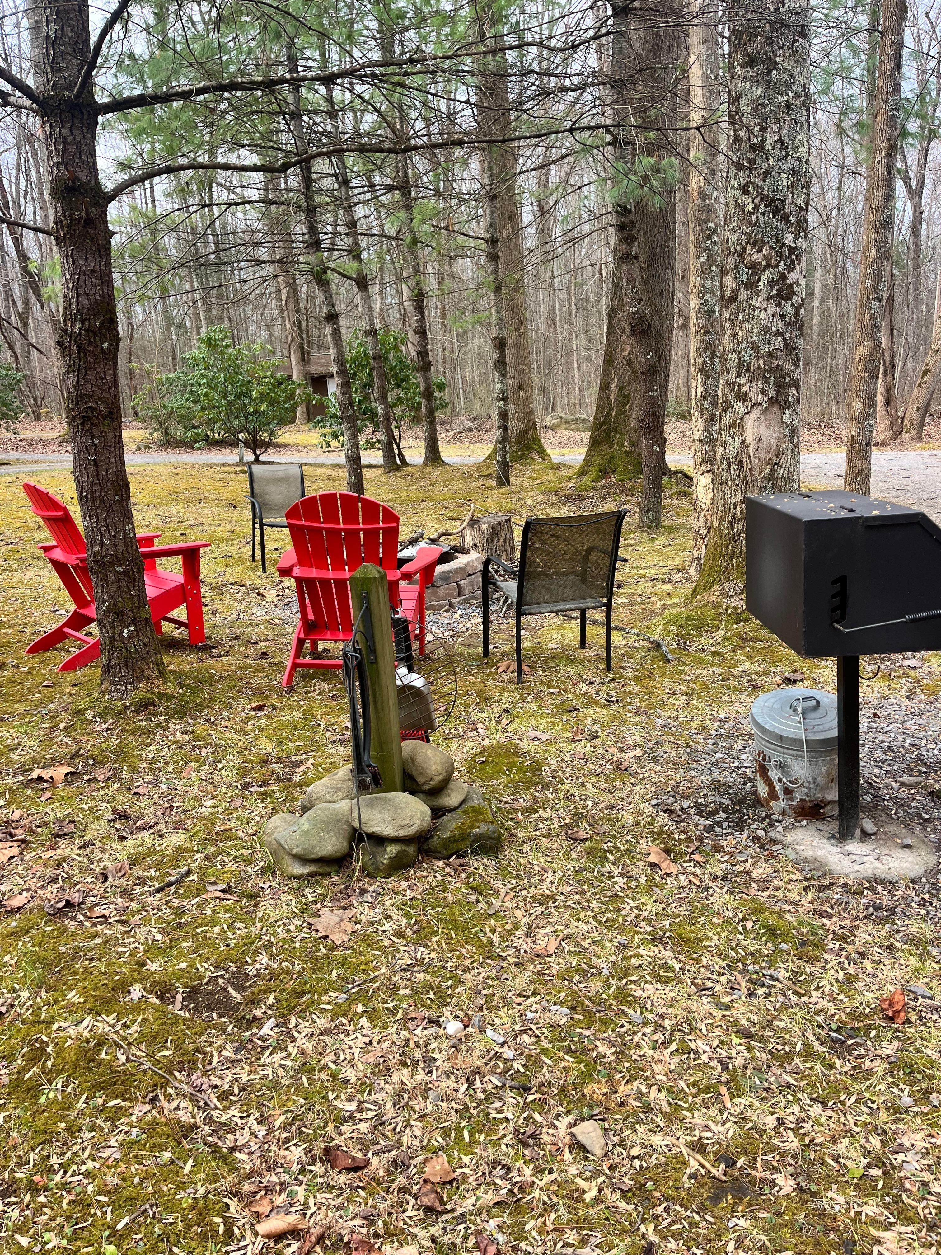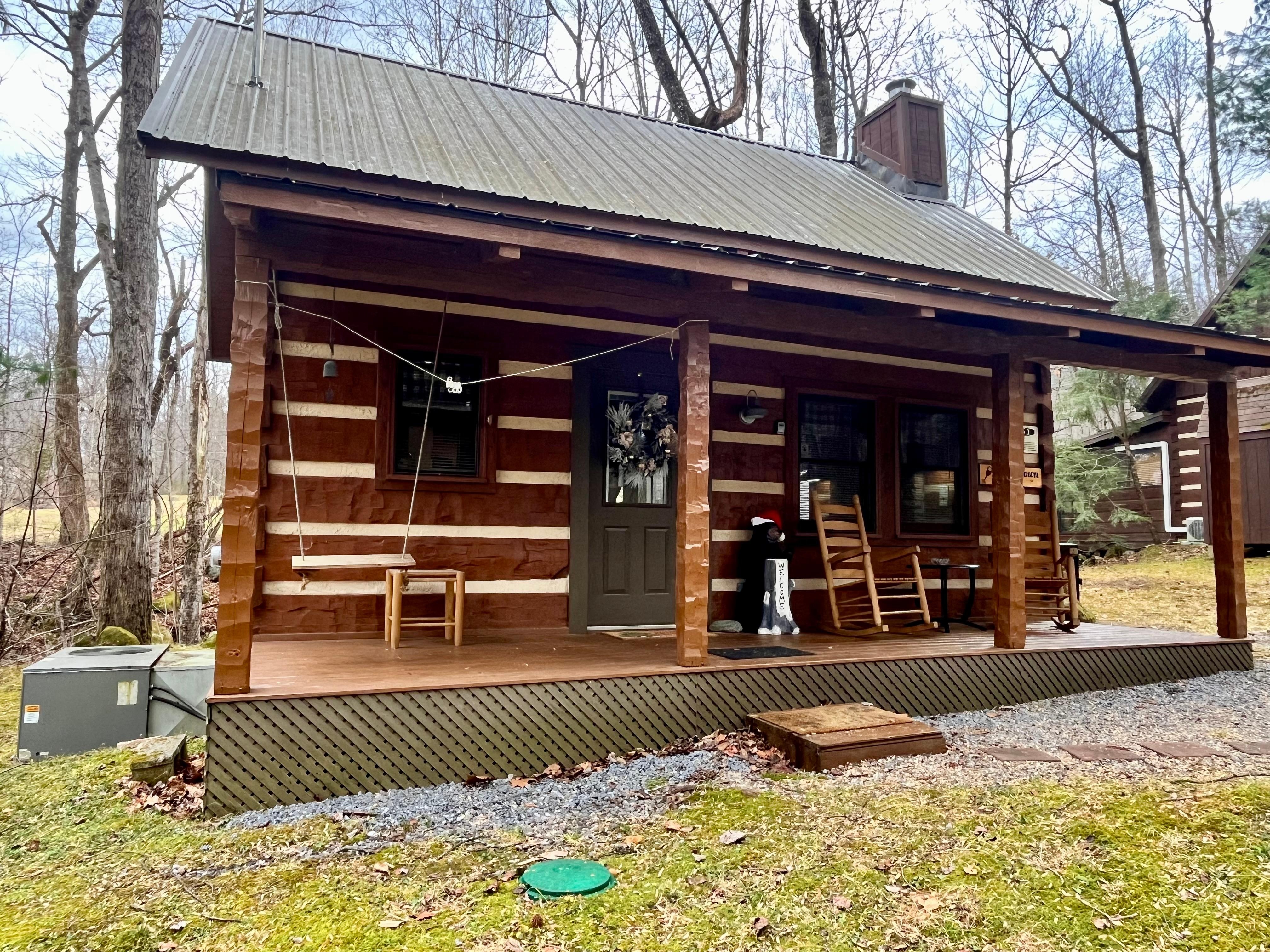 The back deck includes relaxing rolling creek views and sounds to enjoy while sitting in the cozy hot tub; perfect for relaxing and unwinding after a long day. Or perhaps you'd rather rock on the front porch and enjoy the beautiful wooded setting. Wine Down is set back further in woods, surrounded by only sights & sounds of nature for your escape vacation. A newly added fire pit just added for the cooler weather evenings to enjoy.