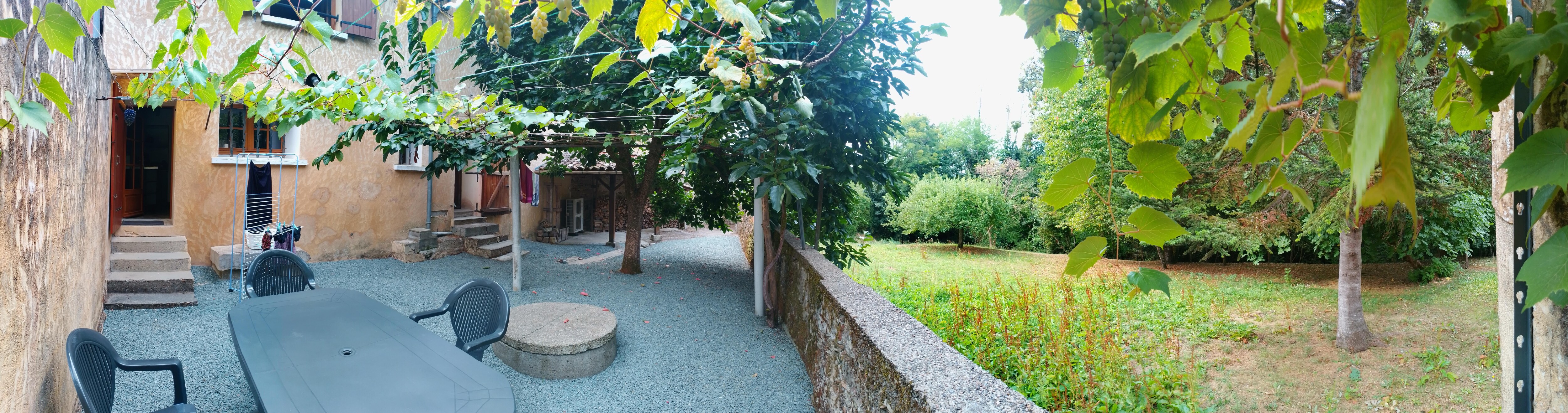 1 terrasse extérieure de 80 M2 calme et ombragée, côté jardin, propice au repos (4 transats) ainsi qu’aux repas en famille (salon de jardin et plancha) ;
