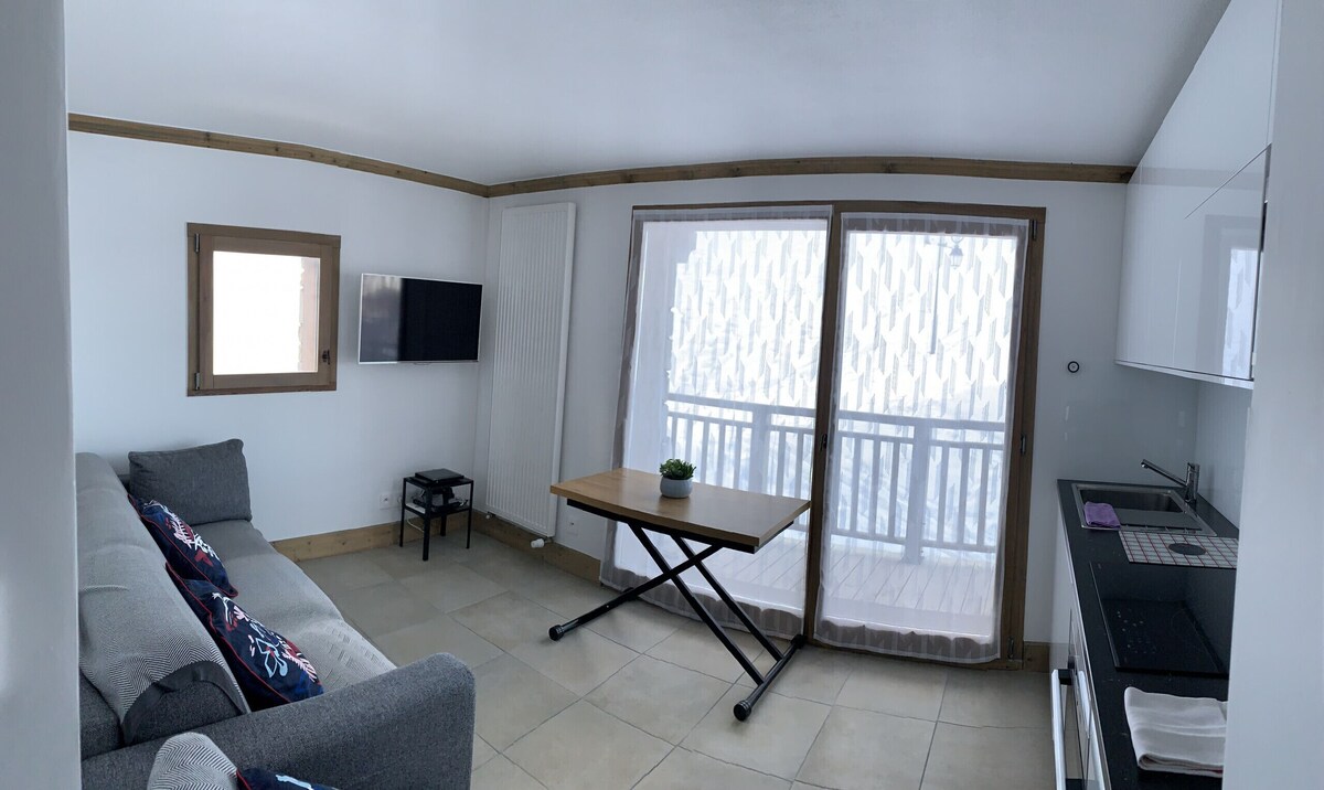 Appartement à Prapoutel qui possède 1 chambre(s) et Capacité pour 4 personnes.Logement de 31 m² accueillant et de construction récente, situé en au pied des pistes de ski, avec vue sur la montagne et la piste de ski.La location se trouve à 10 m des pistes de ski "PRAPOUTEL le CHAMOIS", 50 m du restaurant "LE KAKTUSS", 500 m du super-marché, 800 m du lac "lac de la Jasse", 20 km des thermes "ALLEVARD LES BAINS", 40 km de la gare "GRENOBLE", 40 km de la bus station "GRENOBLE" et il est situé dans une zone résidentiel zone et dans la montagne.Elle dispose de ascenseur, 6 m² de terrasse, lave-linge, sèche-linge, fer à repasser, accès internet (wifi), balcon, chauffage central, parking couvert même bâtiment, 1 Télévision.La cuisine américaine, à induction, est équipée avec réfrigérateur, micro-ondes, four, lave-vaisselle, vaisselle/couverts, ustensiles/cuisine, cafetière, grille pain et bouilloire.