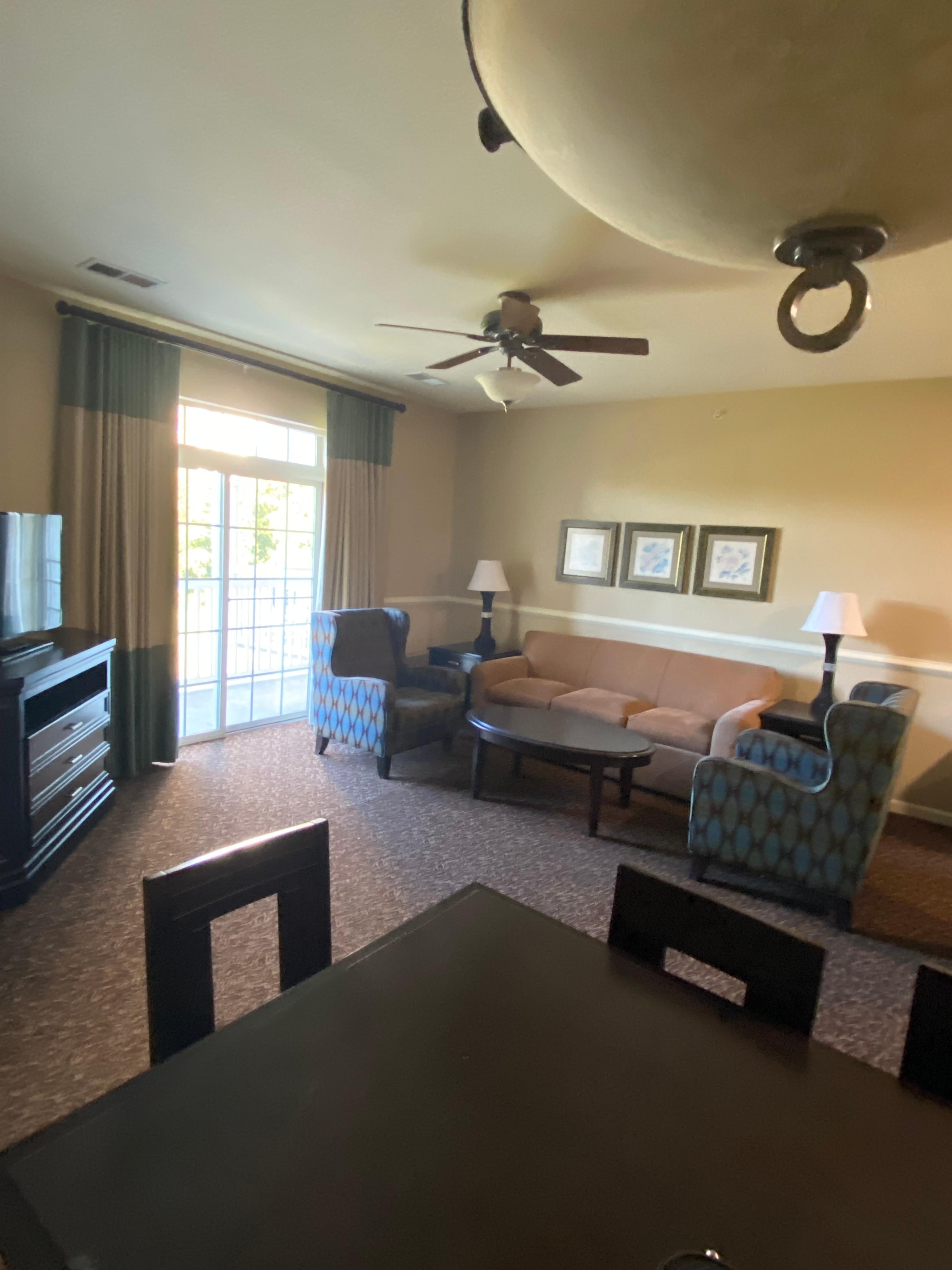 This place was absolutely perfect for someone like me. It was wheelchair accessible in the room and outside. I was able to get all around the property and enjoy the pool and hot tub with the chair lift. I was so pleased and comfortable with staying here. Staff was very sweet and helpful at any time. I give Wyndham Governor’s Green a 5 star rating. WOOHOO!!!